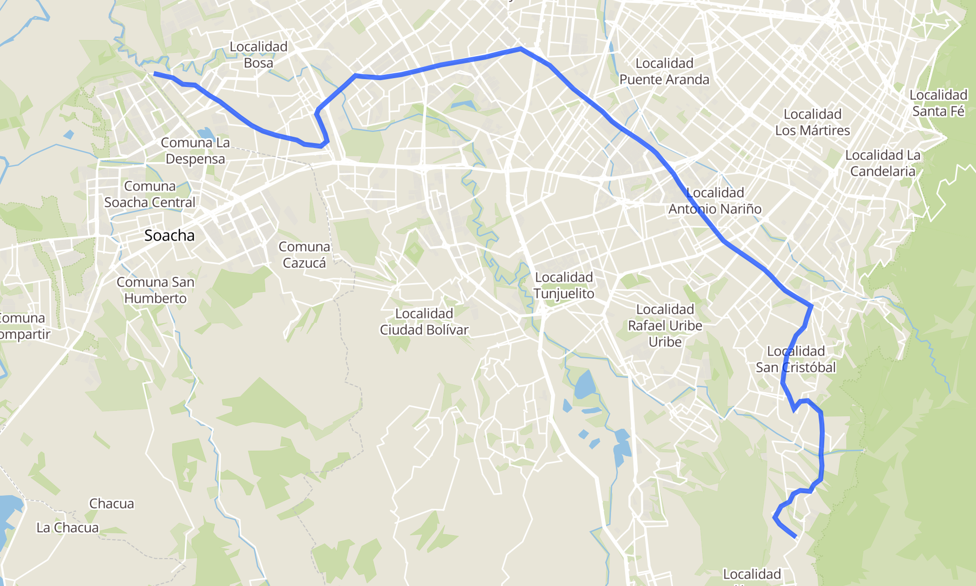 Sentido: Br. Bosa San José (Tv 80i - Cl 93 Sur) (D) ‎→ Br. Juan Rey (Cl 68 Sur - Av. Circunvalar) (87 paradas)
