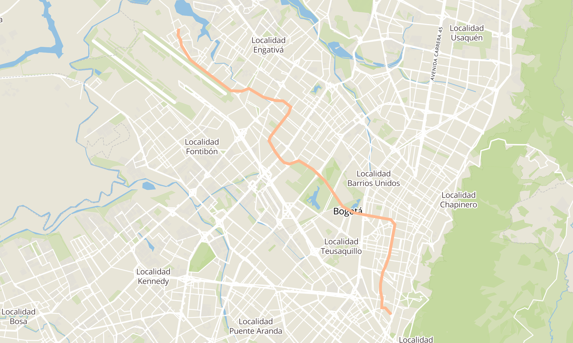 | Br. San Martín (Ac 32 - Kr 13a) (B) | Br. La Esperanza II (Kr 121 - Cl 64d) |