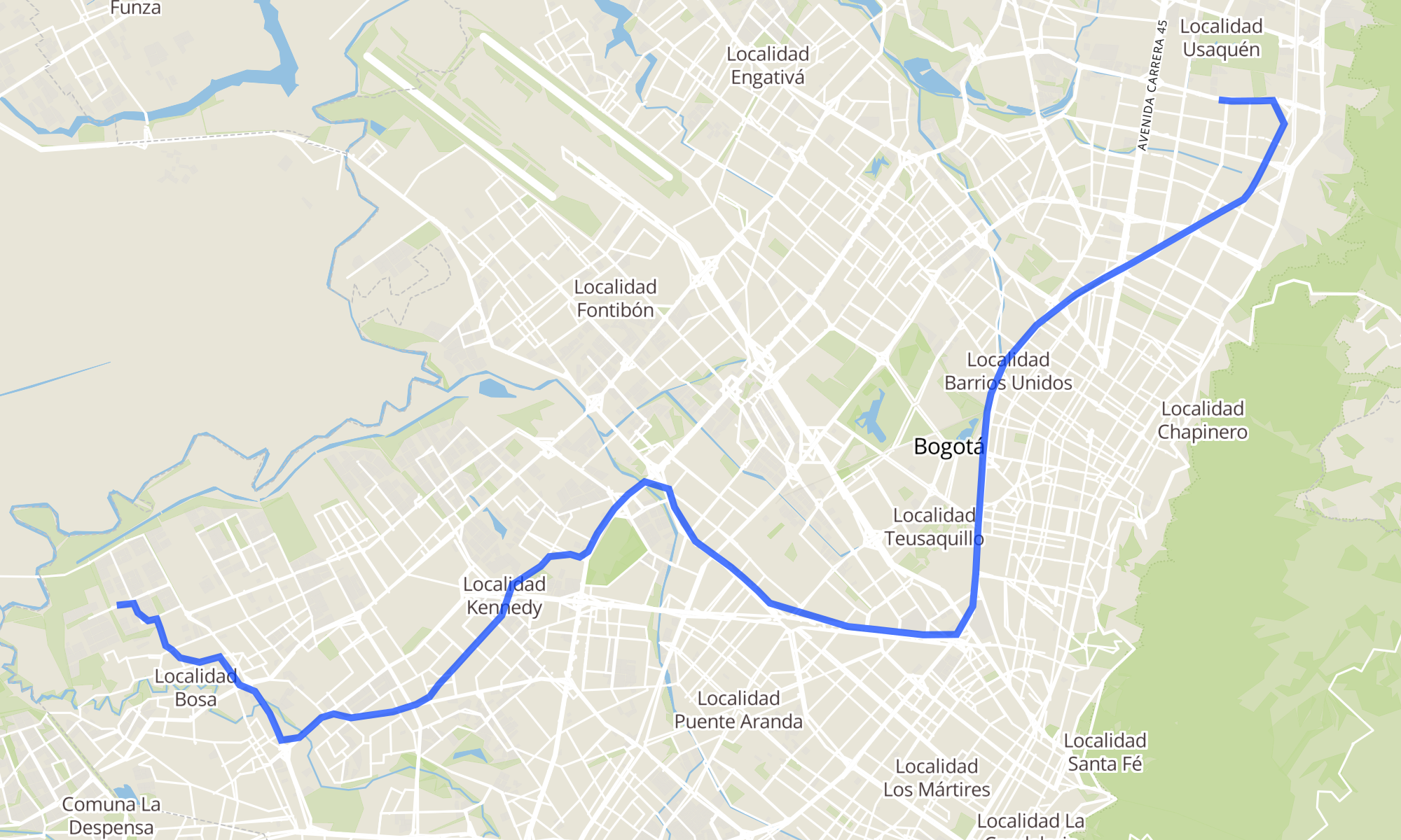 | Hotel Estelar La Fontana (Ac 127 - Kr 15a) | Br. San Bernardino XIX (Kr 95a - Cl 74 Sur) |