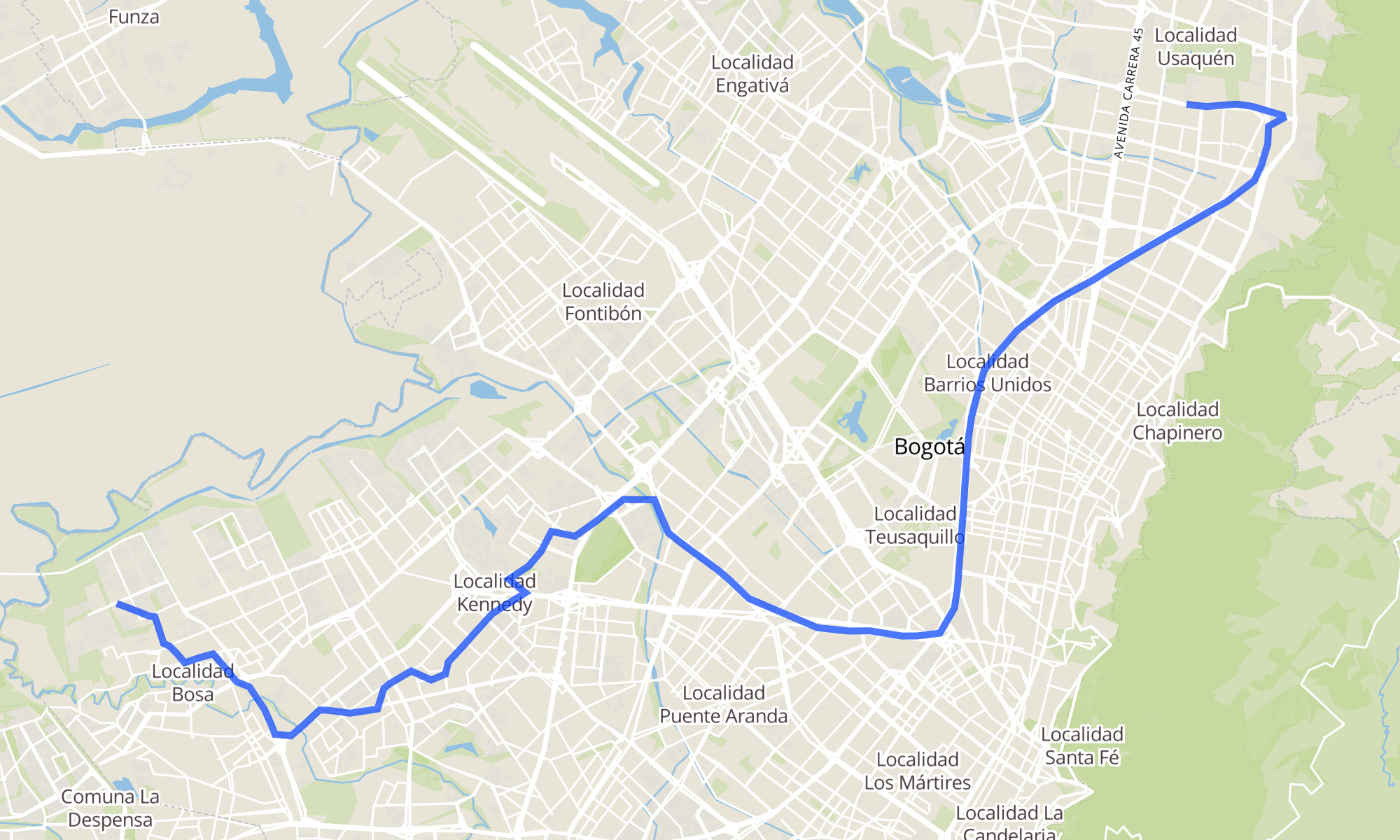 | Br. San Bernardino XIX (Kr 95a - Cl 75a Sur) (A) | Carrera 16a (Ac 127 - Kr 16a) |