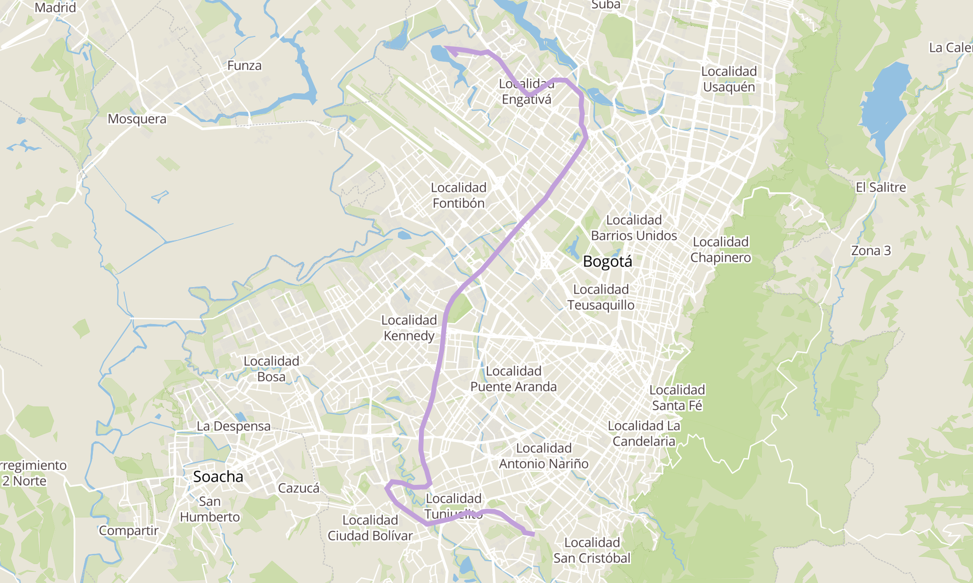 Sentido: Br. Puerto Rico (Kr 9f - Dg 40 Sur) ‎→ Br. Villas De Alcalá (Dg 77 - Tv 120a) (82 paradas)