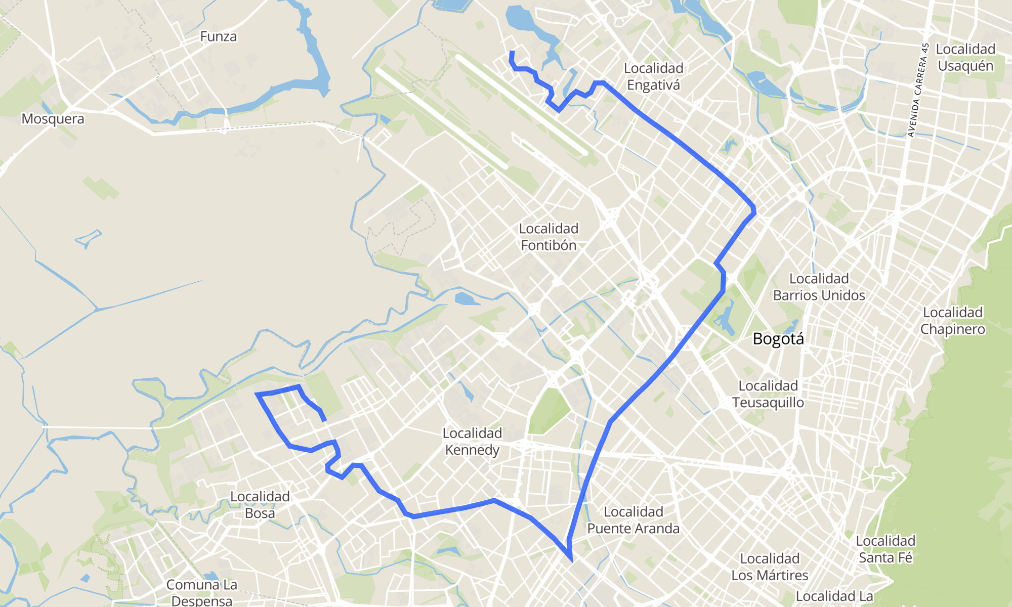 | Br. Las Margaritas (Cl 49 Sur - Kr 90a) | Br. La Esperanza II (Kr 121 - Cl 64d) |