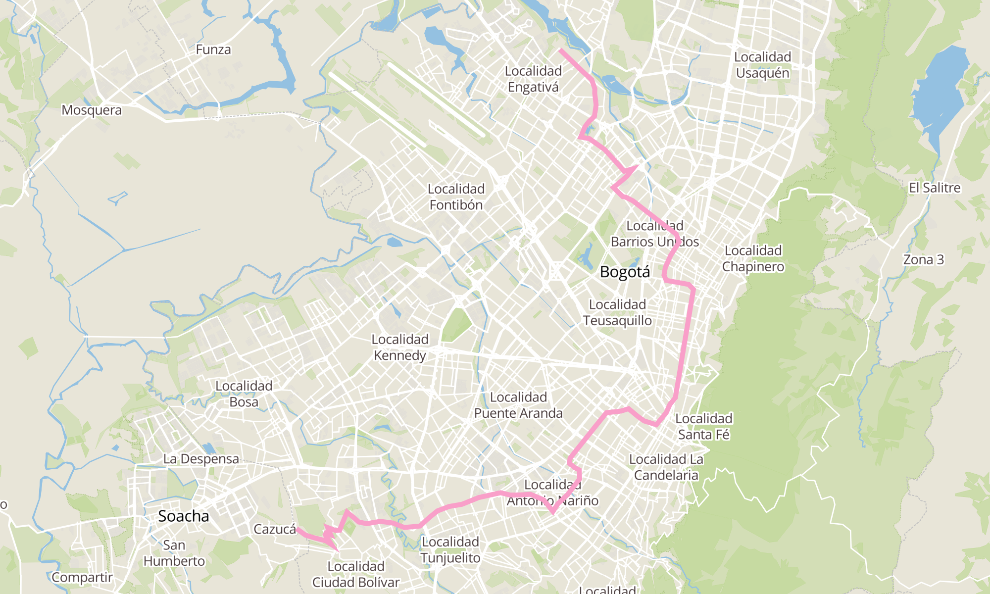 Sentido: Br. Ciudad Bachué I Etapa (Ac 90 - Kr 95f) (A) ‎→ Br. Santo Domingo (Cl 68b Sur - Kr 77b) (104 paradas)