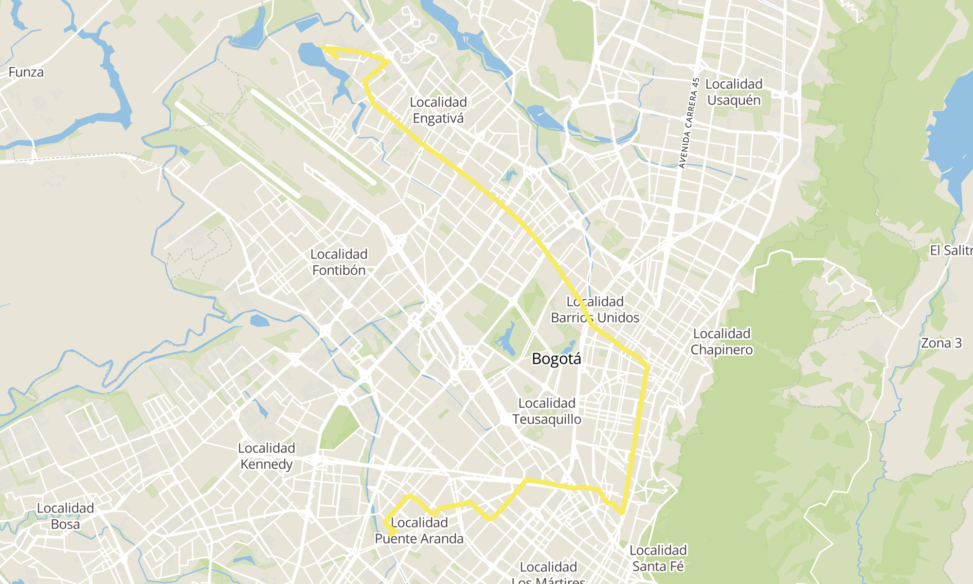 Sentido: Br. Gran Granada Unir (Dg 77 - Tv 120a) ‎→ Br. La Camelia (Tv 53a - Cl 1a) (78 paradas)