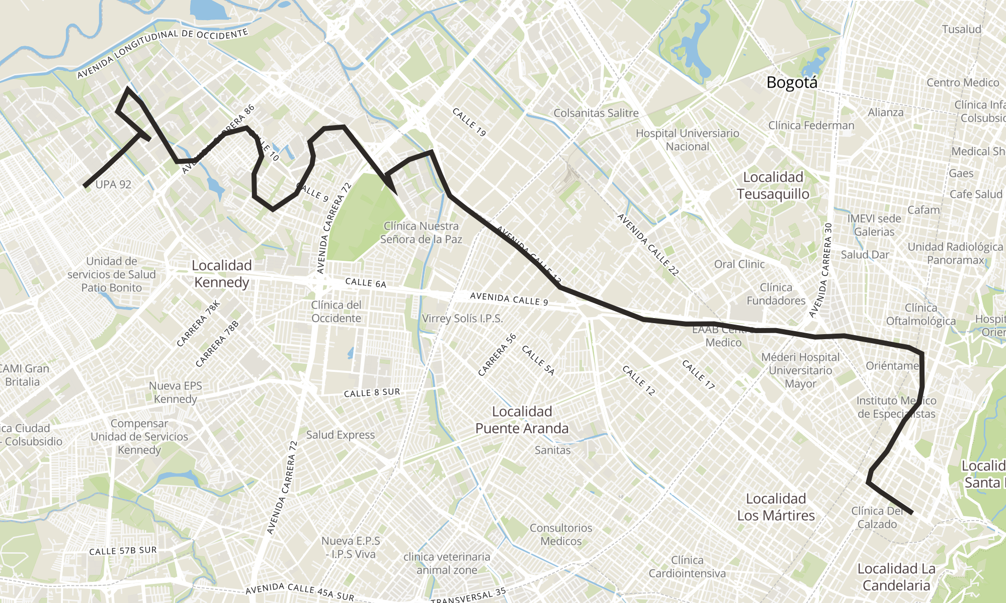 Sentido: Br. Campo Hermoso (Av. Tintal - Cl 26 Sur) ‎→ Br. Veracruz (Ac 19 - Kr 4) (B) (56 paradas)