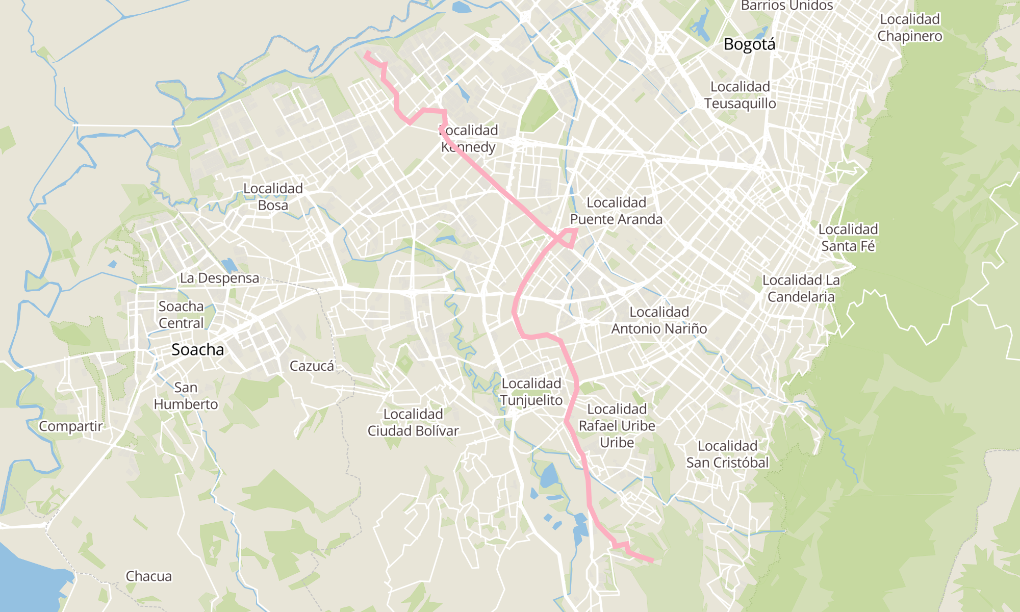 | Br. La Fiscala Alta (Cl 63 Sur - Kr 5b Este) | Br. Tierra Buena I (Kr 99a - Cl 26 Sur) |