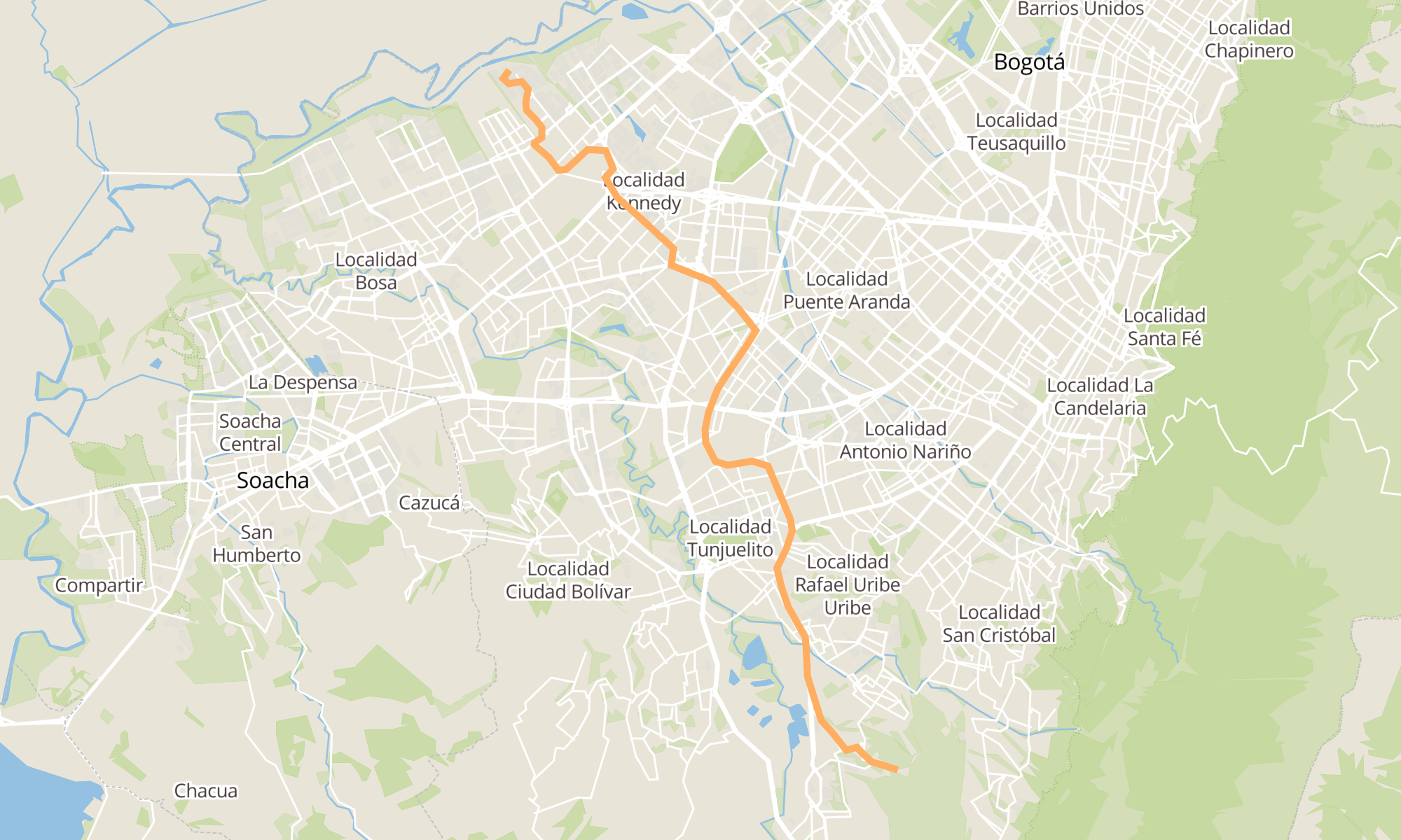 | Br. Tierra Buena I (Kr 99a - Cl 26 Sur) | Br. La Fiscala Alta (Cl 63 Sur - Kr 5b Este) |