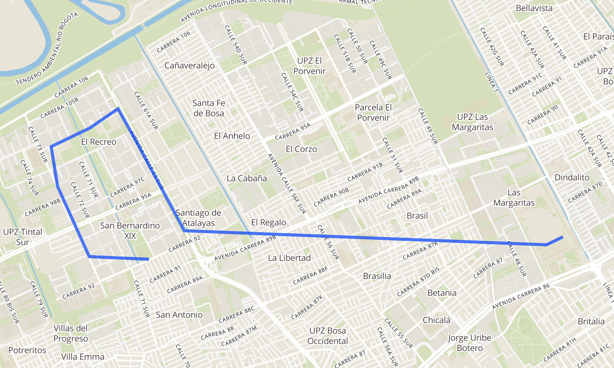 | Br. San Bernardino XVI (Kr 92 - Cl 69c Sur) | Portal De Las Américas [Plataforma 3 - Alimentadores] |