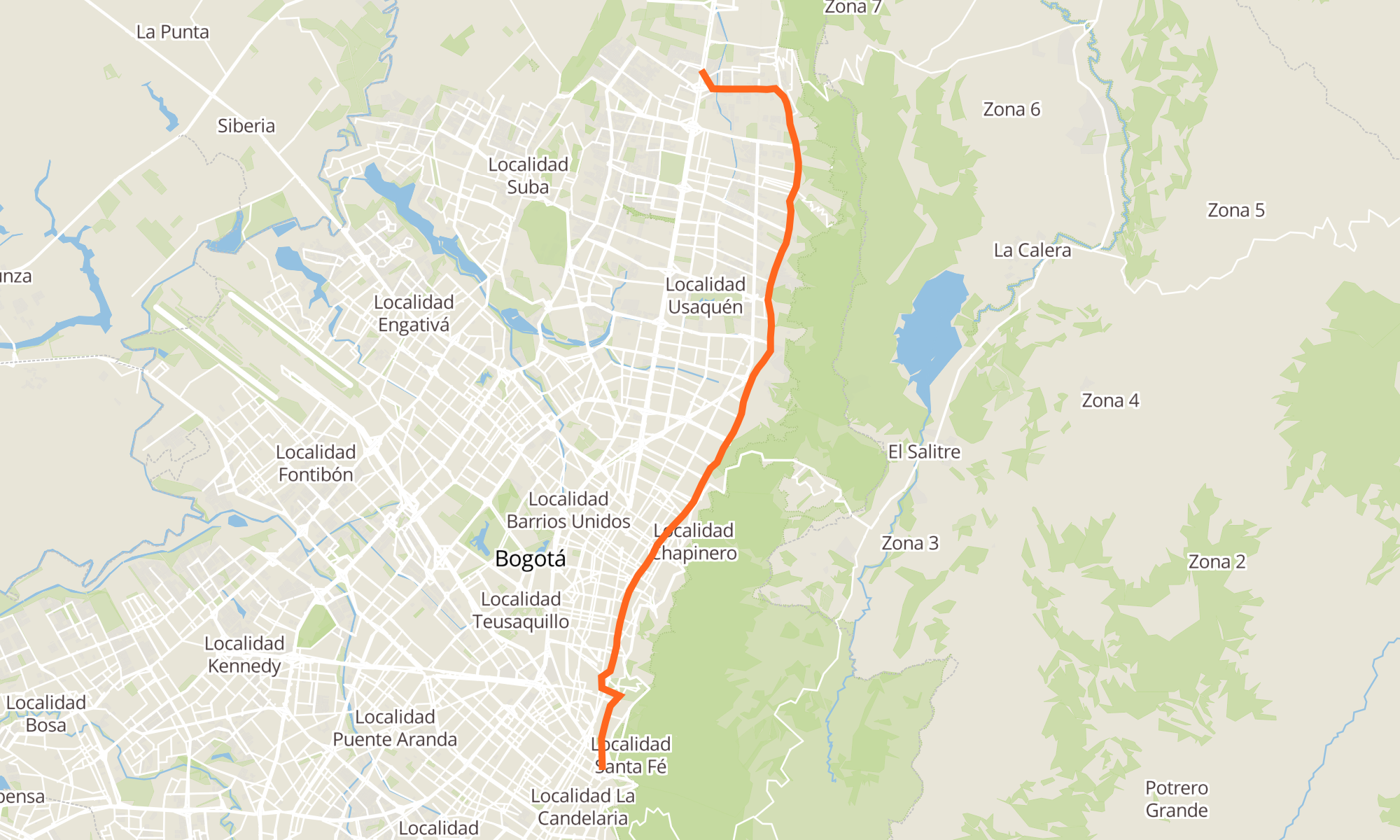 | Centro Comercial Santafé (Auto Norte - Cl 187) (A) | Estación Universidades (Kr 3 - Cl 21) |