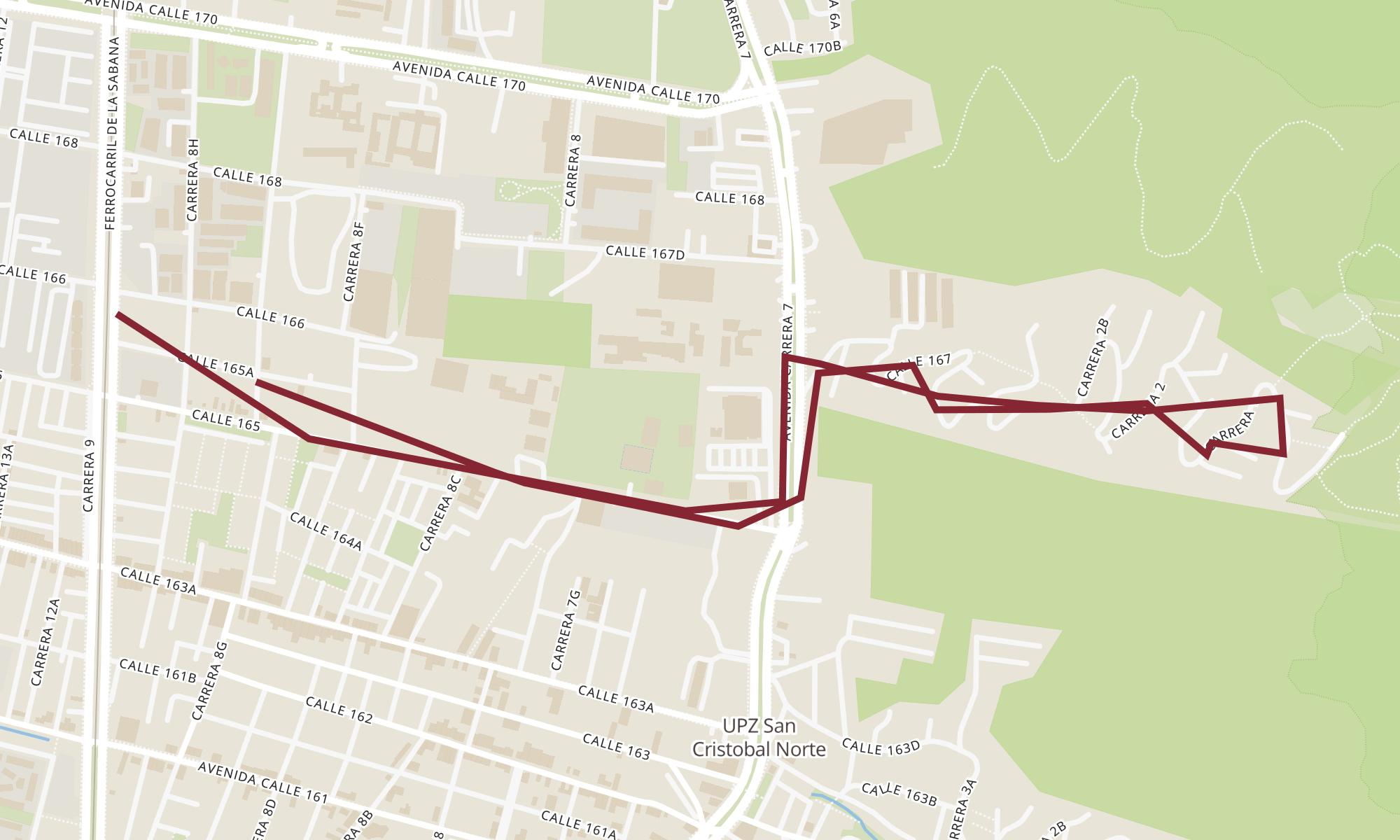 | Br. Santa Teresa (Kr 8g - Cl 166) | Br. San Cristóbal Norte (Ak 9 - Cl 165a) |