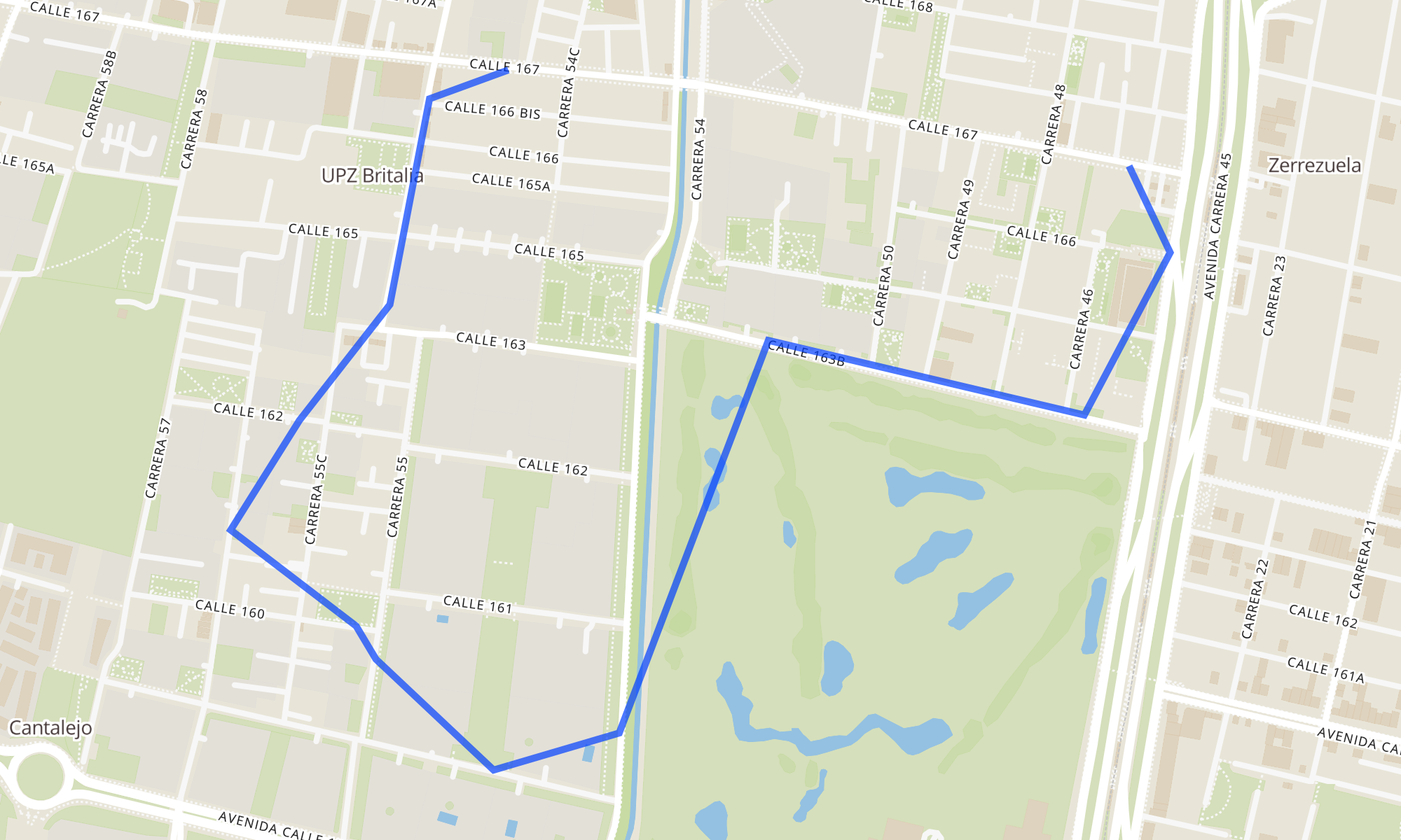 | Br. Granada Norte (Cl 167 - Kr 45a) | Br. Britalia (Cl 167 - Kr 54d) |