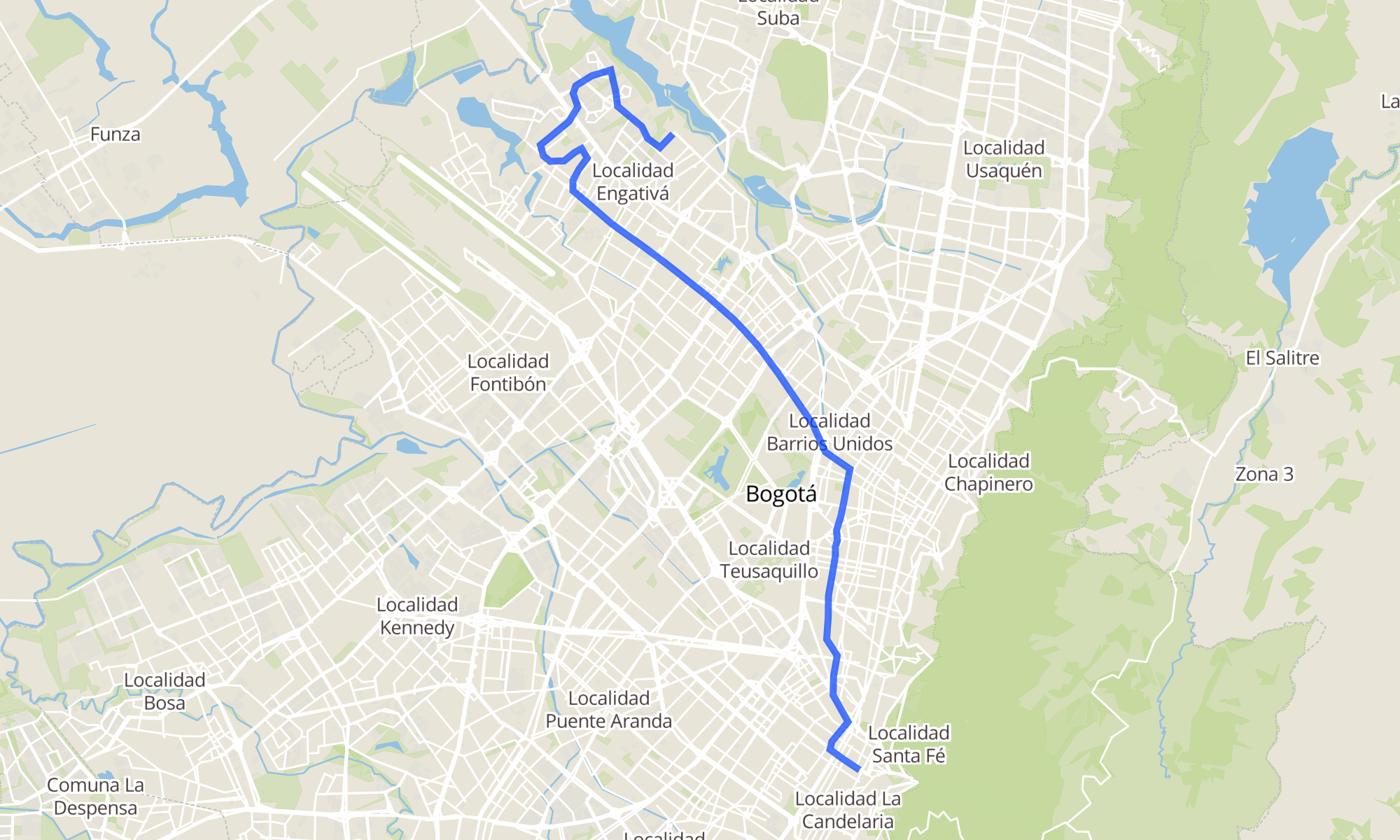 Sentido: Br. Ciudad Bachué (Kr 95g - Cl 89) (B) ‎→ Br. Veracruz (Ac 19 - Kr 4) (A) (65 paradas)