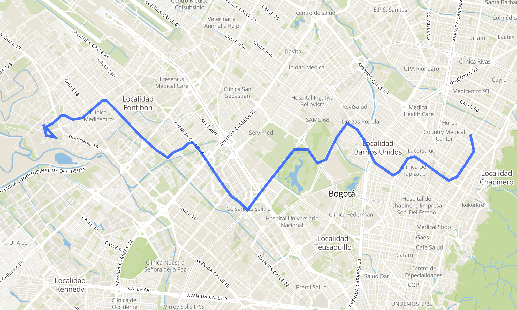 | Br. Predio Caldas (Dg 15a - Kr 104) | Centro Comercial Andino (Ac 82 - Kr 12) |