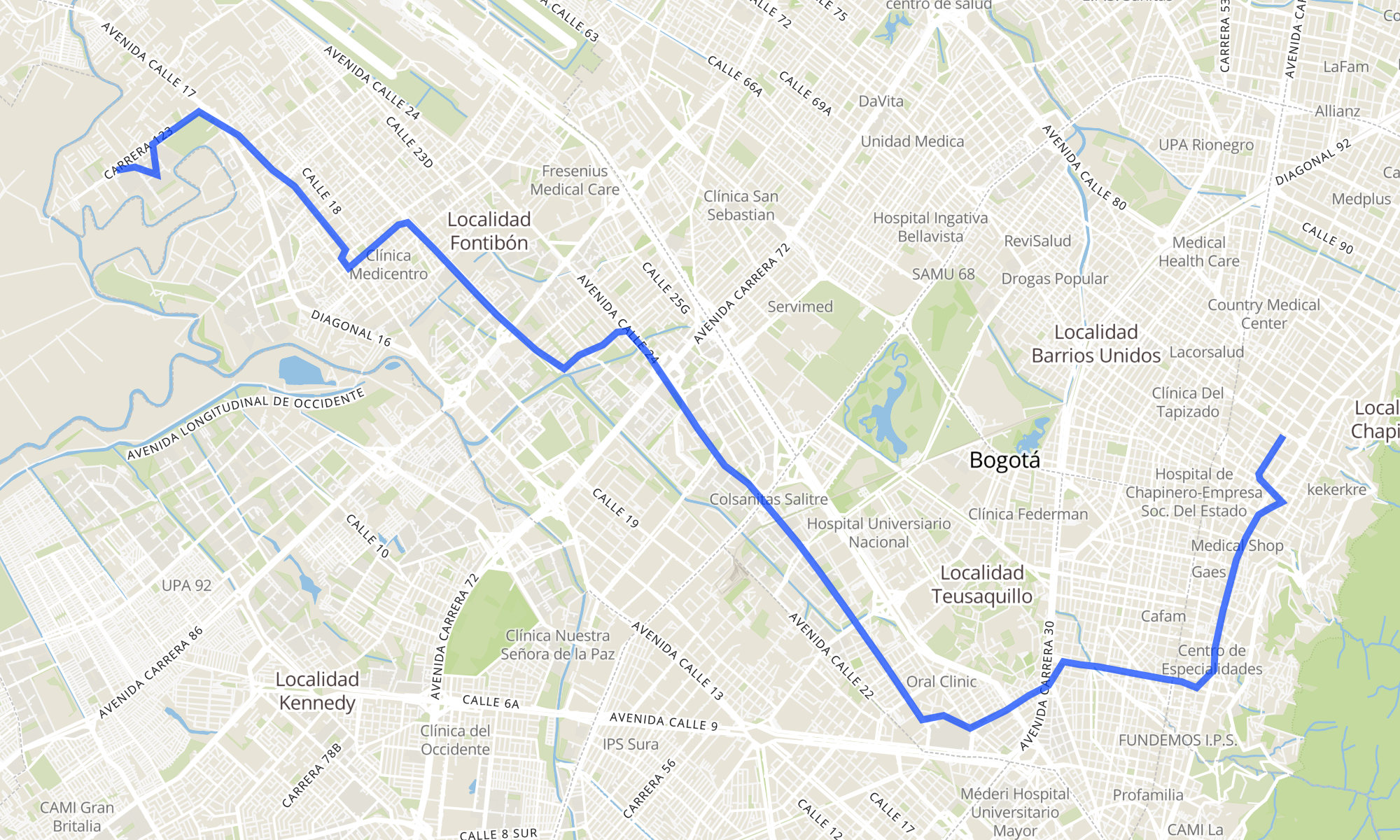 | Br. Praderas De Fontibón (Kr 123 - Cl 14) | Universidad Ean (Kr 9 - Cl 71) |