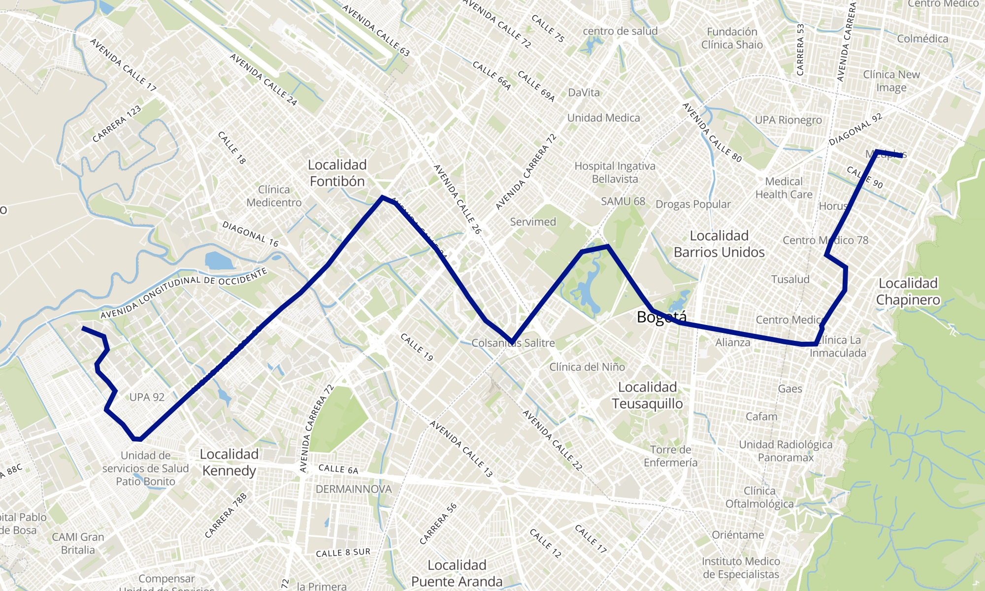 | Br. Los Pantanos (Cl 26 Sur - Kr 97f) (A) | Br. Chicó Norte (Cl 94 - Kr 11a) |