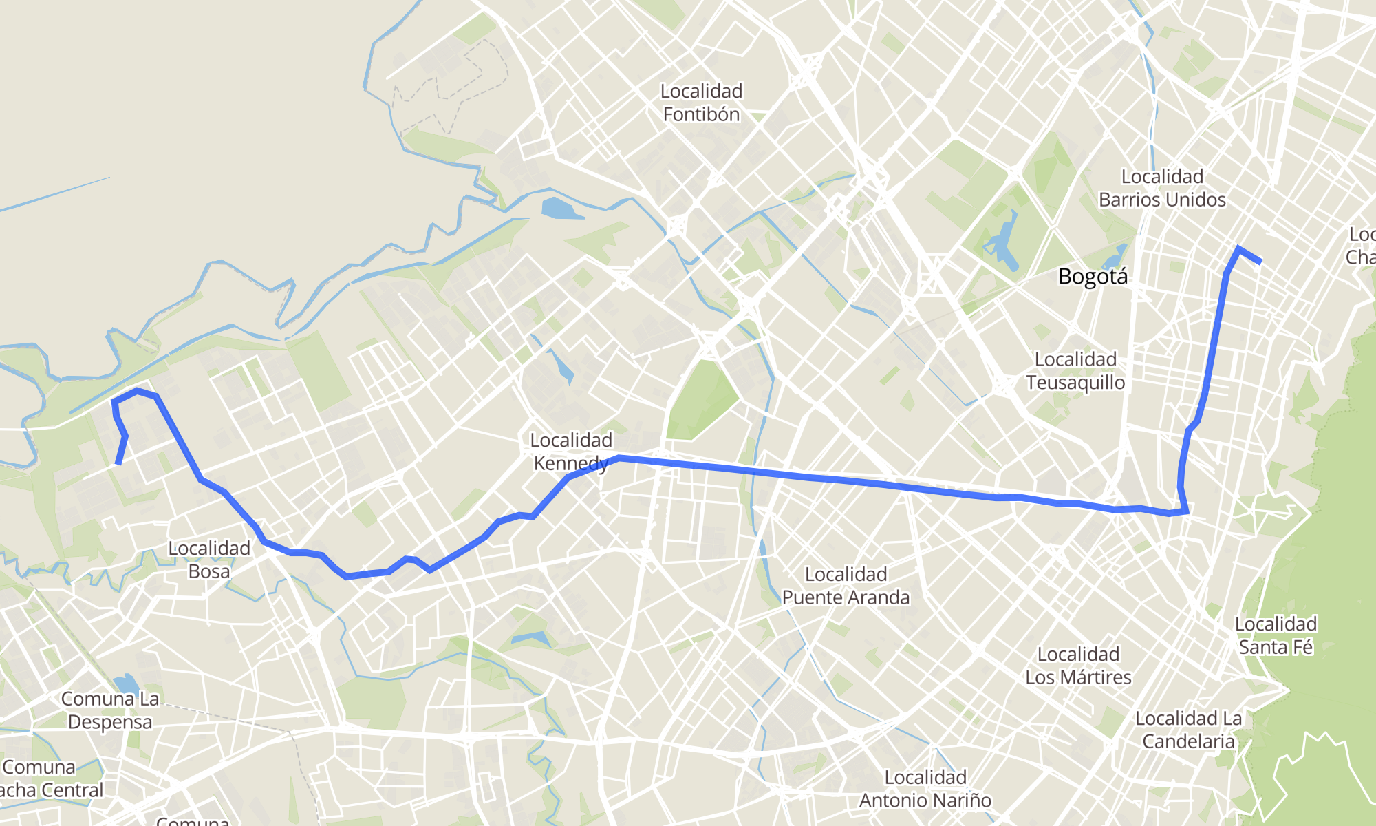 Br. San Bernardino XIX (Kr 95a - Cl 75a Sur) (A)Estación Flores (Kr 13 - Dg 68)