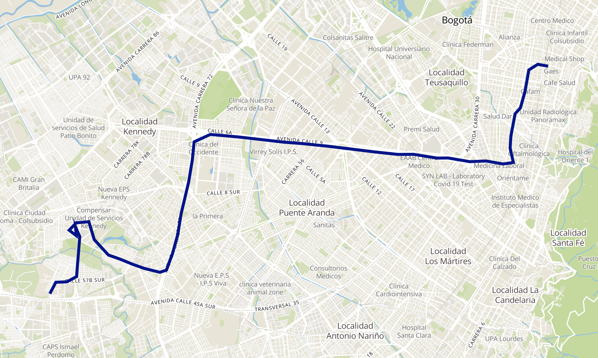 | Portal Del Sur (Kr 72d - Cl 57k Sur) | Avenida Caracas (Ac 57 - Kr 13) |