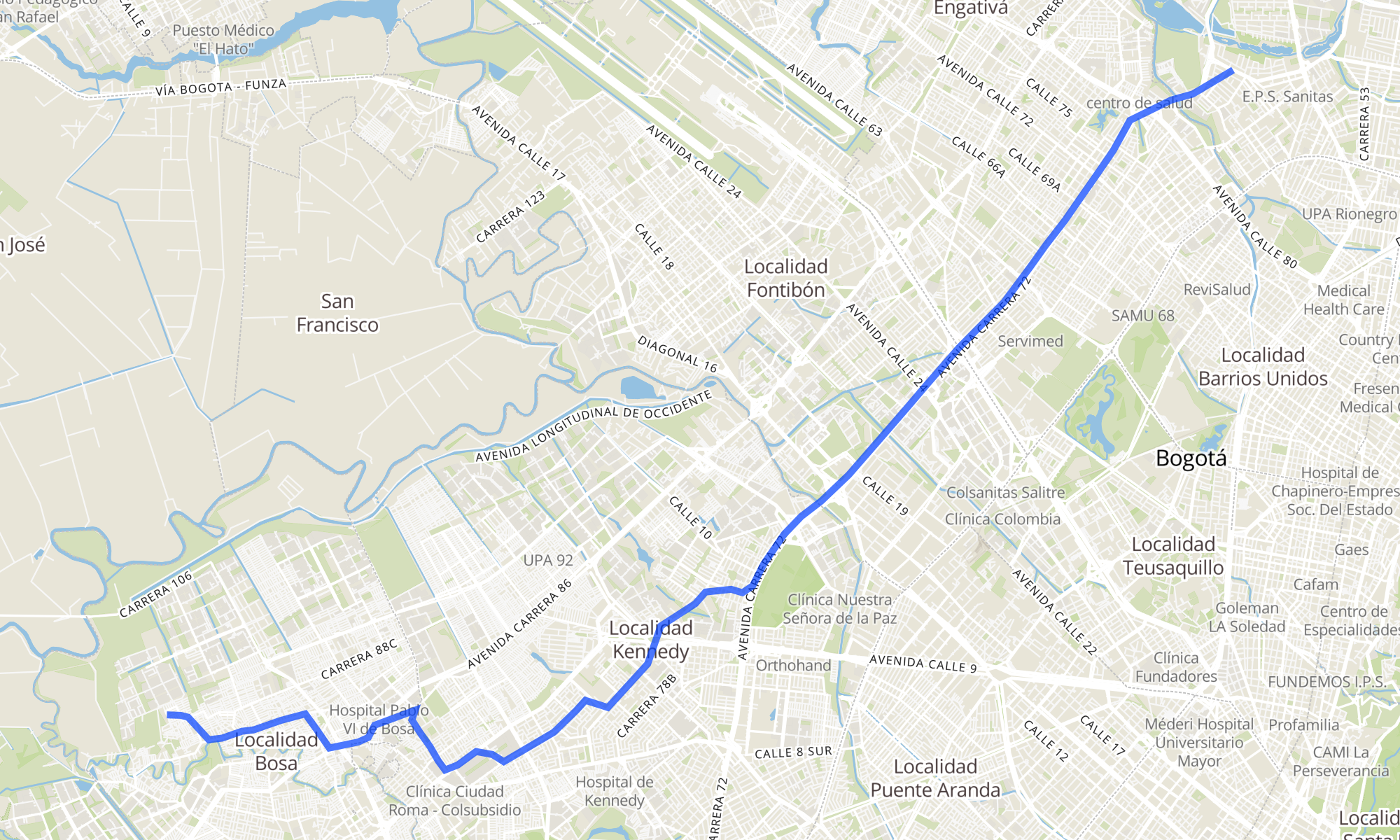Sentido: Br. Potosí (Ac 116 - Kr 71c) ‎→ Colegio Kimy Pernía Domicó (Kr 89b - Cl 82 Sur) (58 paradas)