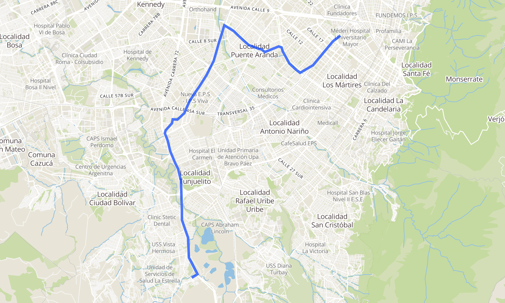 | Br. Monterrey (Kr 15 - Cl 75b Sur) | Centro Comercial Calima (Ac 22 - Kr 29a) |