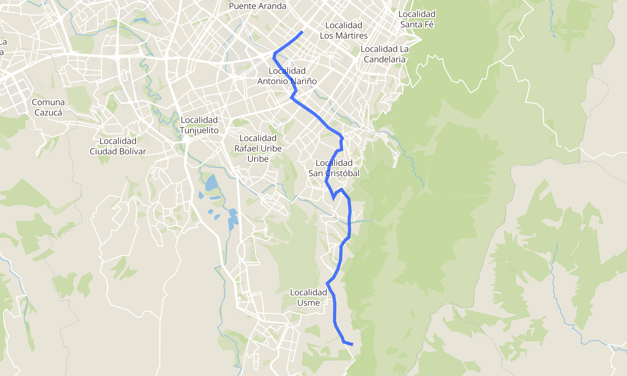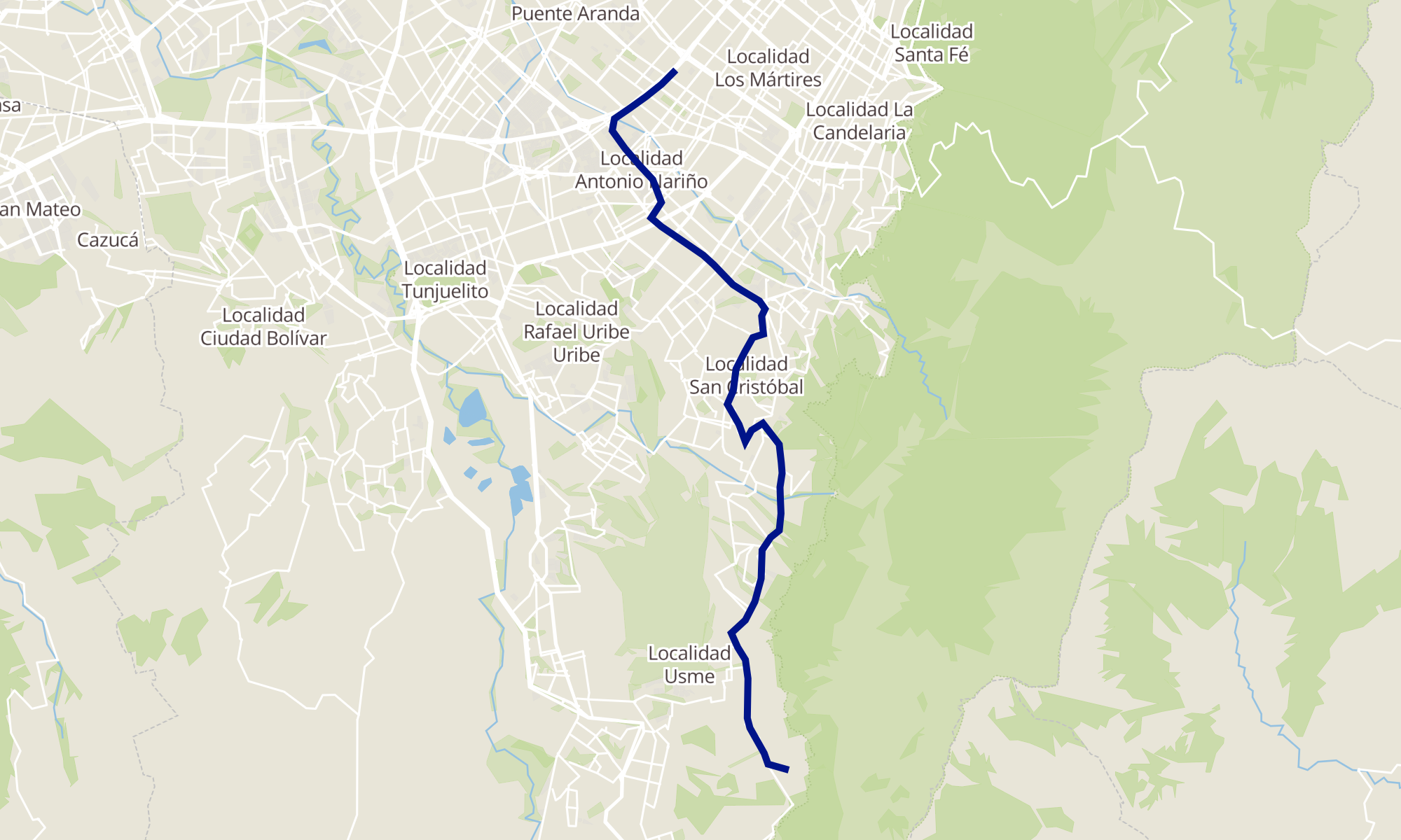 | Br. Las Violetas (Cl 92 Sur - Kr 20a Este) | Estación Comuneros (Av. NQS - Cl 4a) |