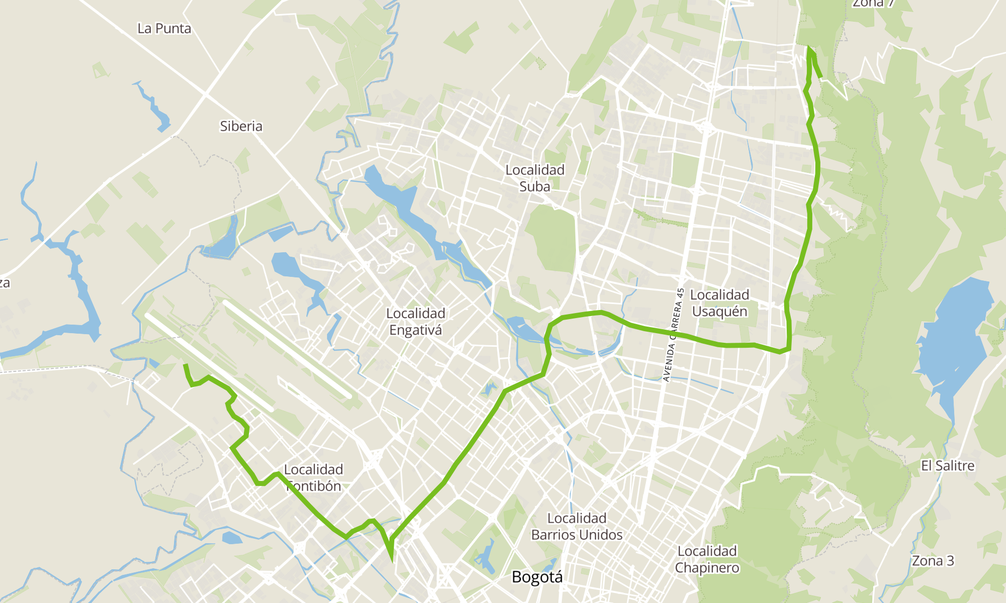 Sentido: Centro Empresarial Uraki (Cl 22c - Kr 132) ‎→ Br. El Codito (Kr 2 Este - Cl 185c) (98 paradas)