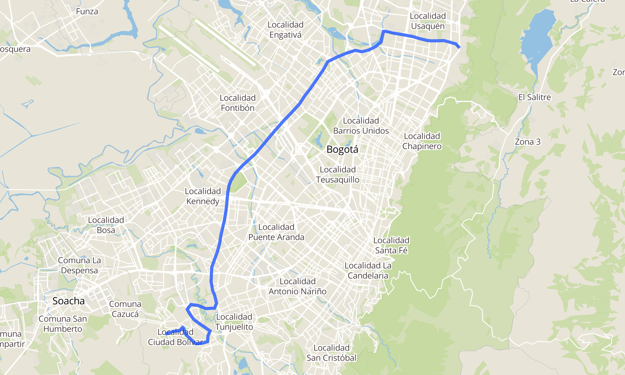 Sentido: Br. Arborizadora Alta (Cl 75b Sur - Tv 36b) ‎→ Br. Santa Bárbara Oriental (Ak 7 - Cl 124) (A) (72 paradas)