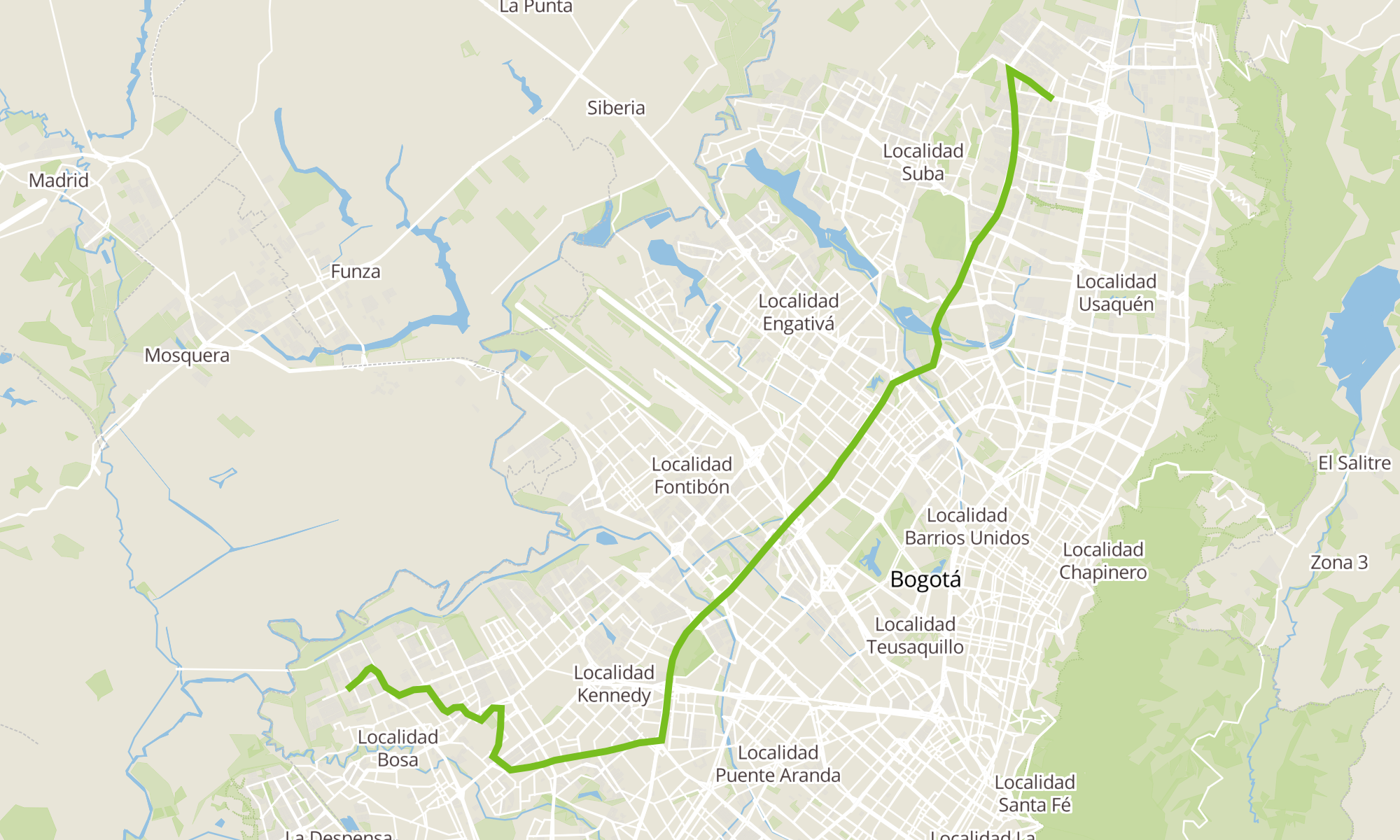 | Br. San Bernardino XIX (Kr 95a - Cl 75a Sur) (B) | Colegio San Simón (Ac 170 - Kr 56) (B) |