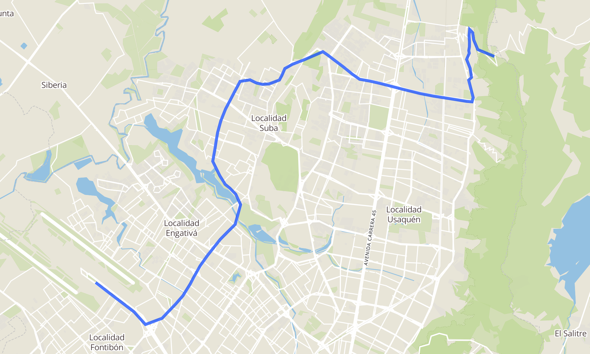 Sentido: Cac (Ac 26 - Kr 106) ‎→ Br. Altos De Serrezuela (Cl 185 - Kr 1) (72 paradas)