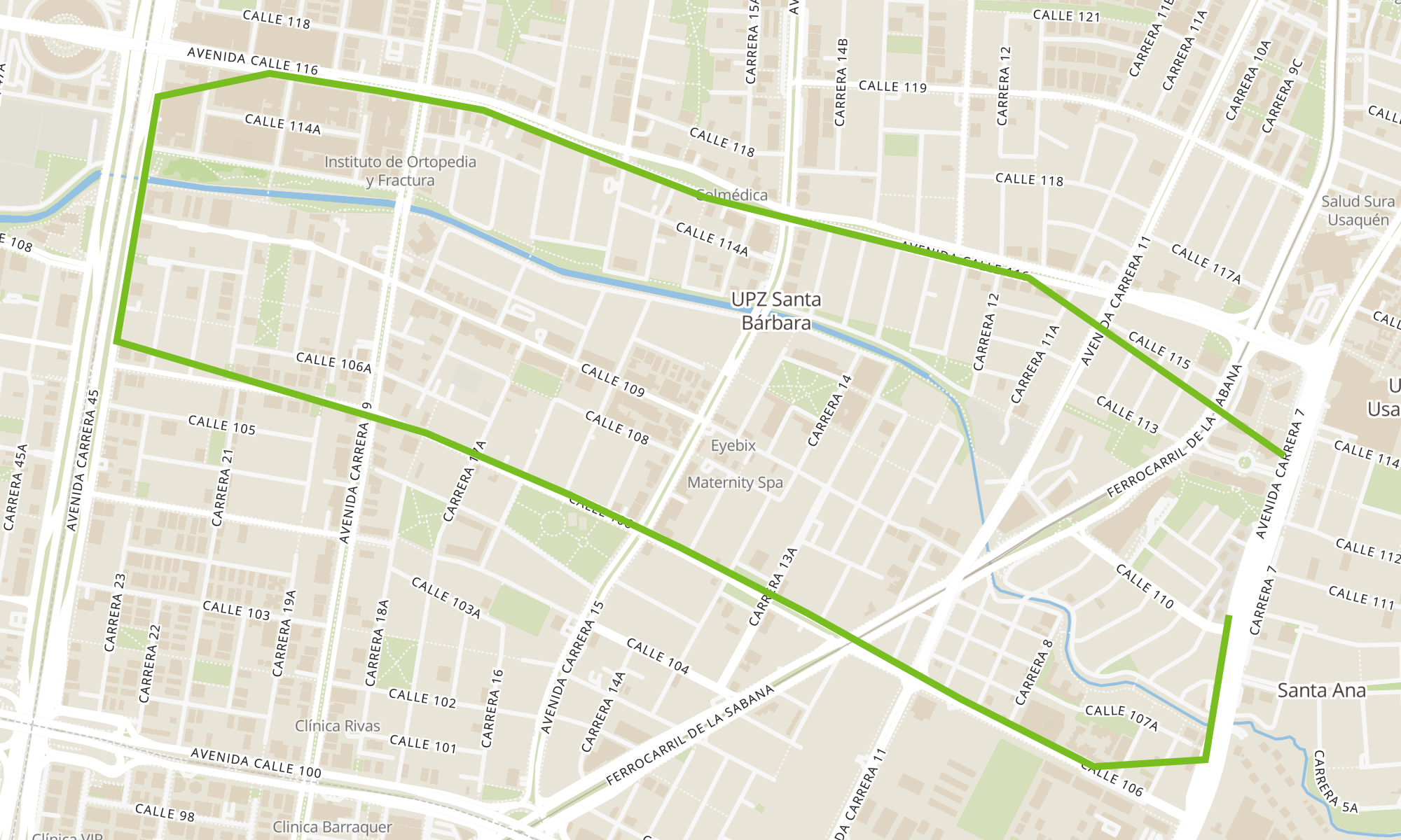 | Br. Santa Ana Occidental (Ak 7 - Cl 110) (A) | Centro Comercial Hacienda Santa Bárbara (Ak 7 - Cl 113) (A) |