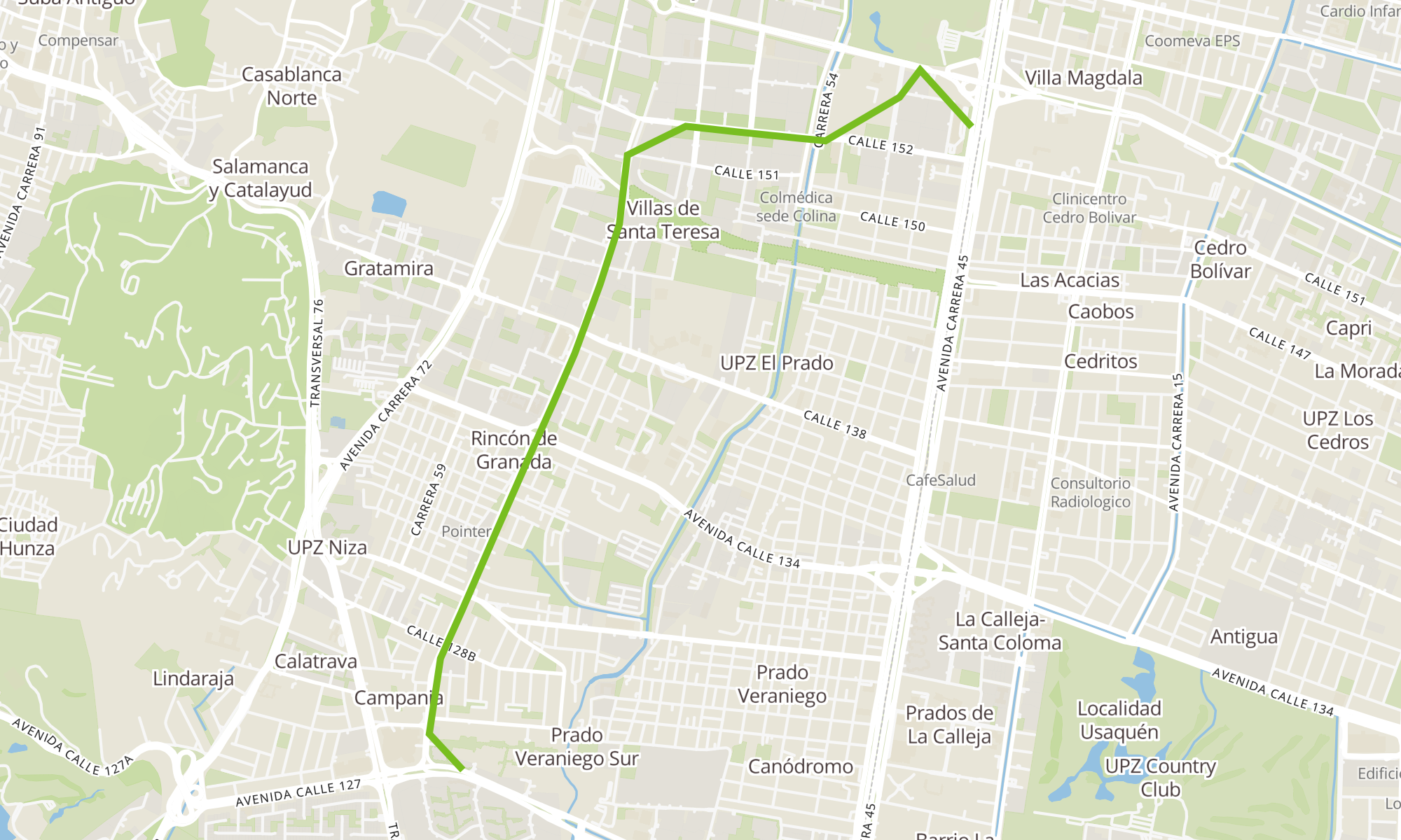 | Centro Comercial Bulevar Niza (Ac 127 - Av. Villas) | Estación Mazurén (Auto Norte - Cl 152) |