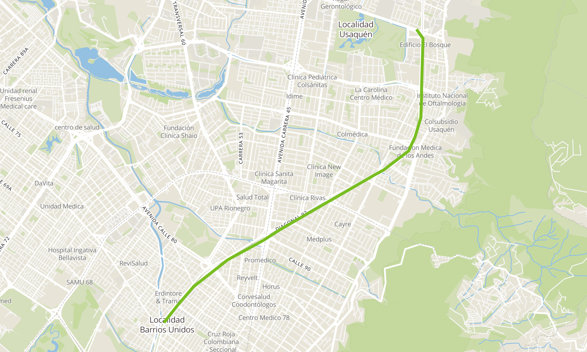 | Estación Avenida Chile (Av. NQS - Cl 70) | Br. Lisboa (Ac 134 - Kr 9a) |