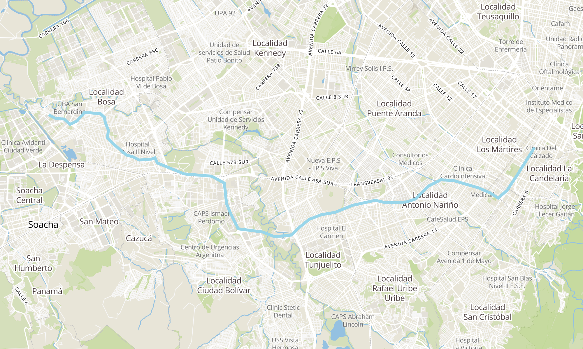 | Br. La Capuchina (Ak 10 - Cl 15) | Br. Bosa San José (Kr 80i - Cl 85b Sur) |