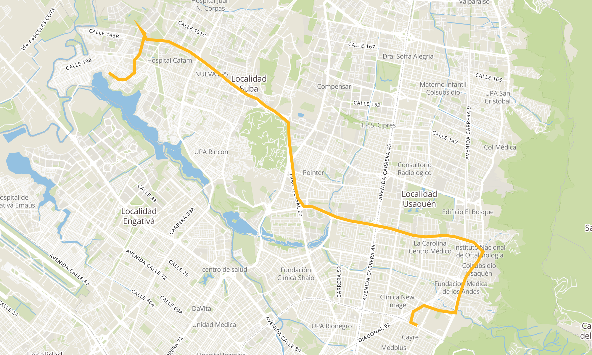 | Escuela De Infantería (Ac 100 - Kr 11) (A) | Ied La Toscana - Lisboa (Cl 132 - Kr 140a) |
