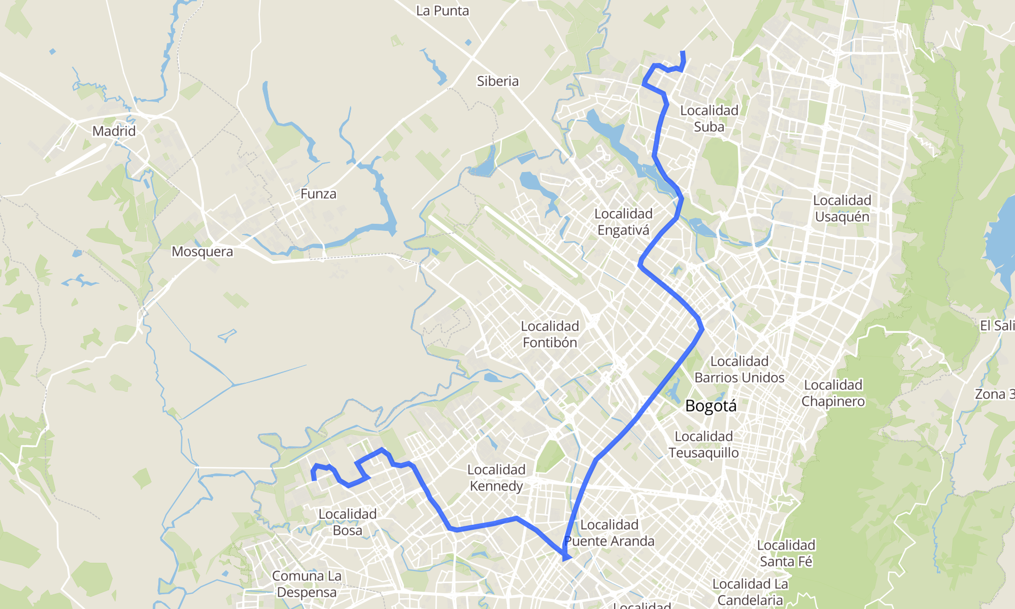 | Br. San Bernardino XIX (Kr 95a - Cl 75a Sur) (C) | Clínica Juan N. Corpas (Av. Corpas - Cl 159a) |