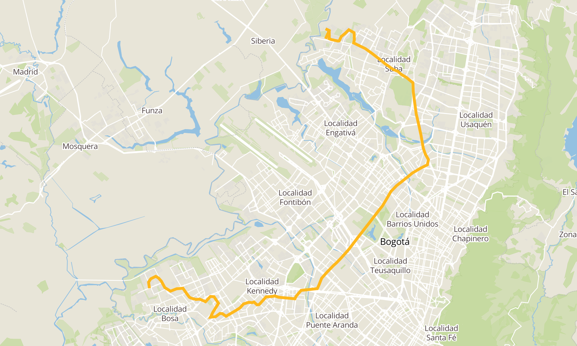| Br. San Bernardino XIX (Kr 95a - Cl 75a Sur) (C) | Br. Bilbao II Sector (Cl 144 - Kr 147a) |