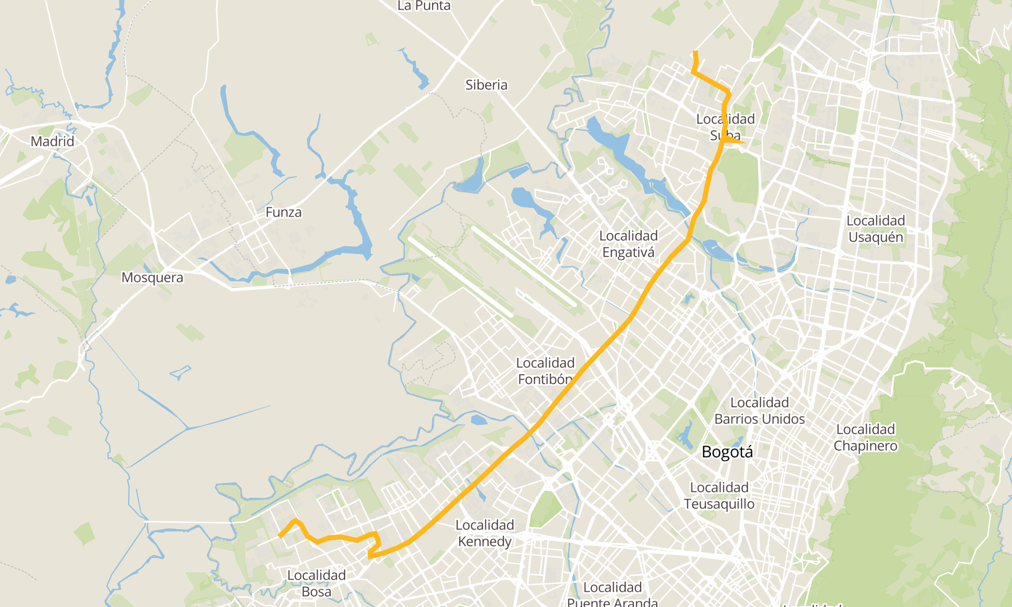 | Br. San Bernardino XIX (Kr 95a - Cl 75a Sur) (C) | Clínica Juan N. Corpas (Av. Corpas - Cl 159a) |