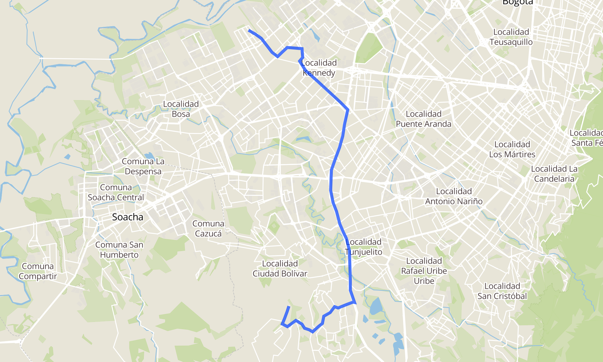 Sentido: Ied Paraíso Mirador (Kr 27b - Cl 71 Sur) ‎→ Br. Bellavista (Cl 40 Sur - Kr 93b) (51 paradas)