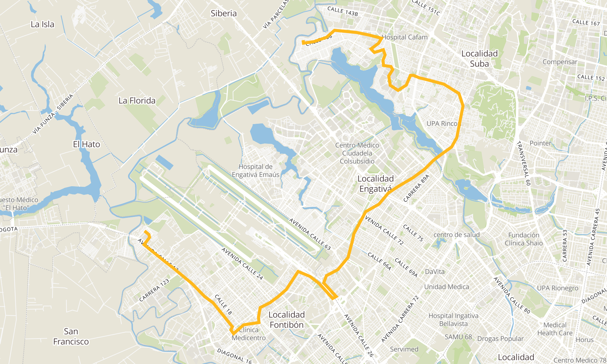 | Br. Prados De Alameda (Kr 137 - Cl 17c) | Br. Santa Rita De Suba (Kr 158b - Cl 138b) |