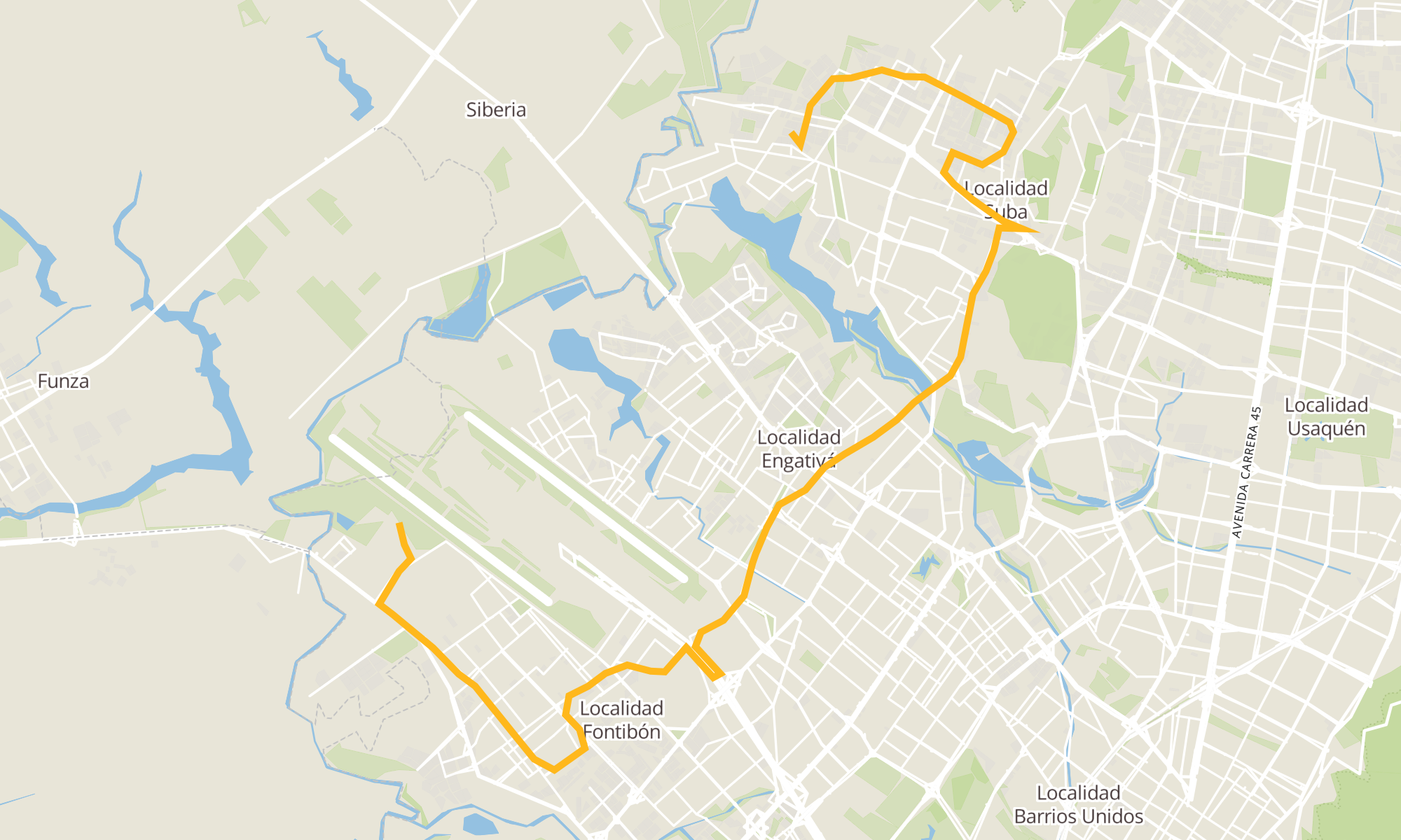 | Centro Empresarial Uraki (Cl 22c - Kr 132) | Br. Sabana De Tibabuyes (Kr 129a - Cl 142d) |