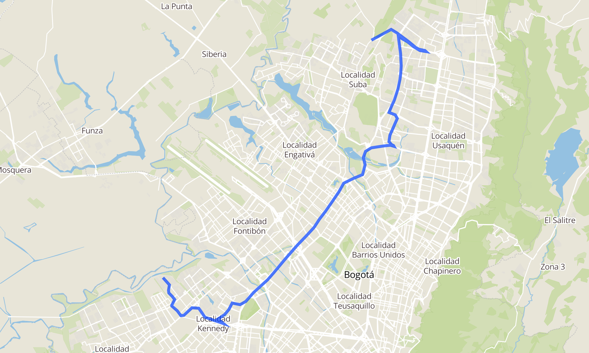 | Br. Los Pantanos (Cl 26 Sur - Kr 97f) (B) | Br. Suba Salitre (Kr 92 - Cl 170) |