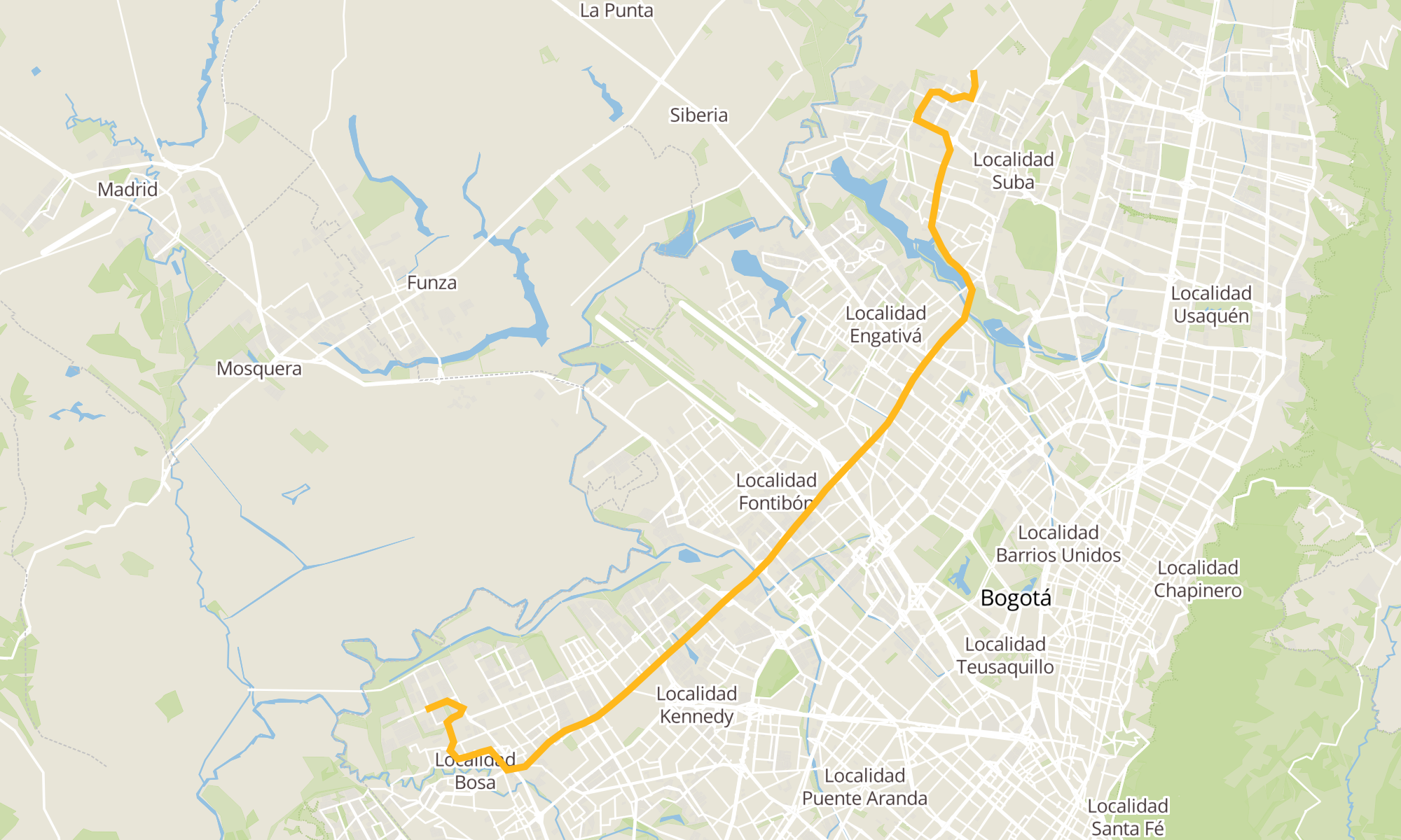 | Br. San Bernardino XIX (Kr 95a - Cl 75a Sur) (C) | Clínica Juan N. Corpas (Av. Corpas - Cl 159a) |