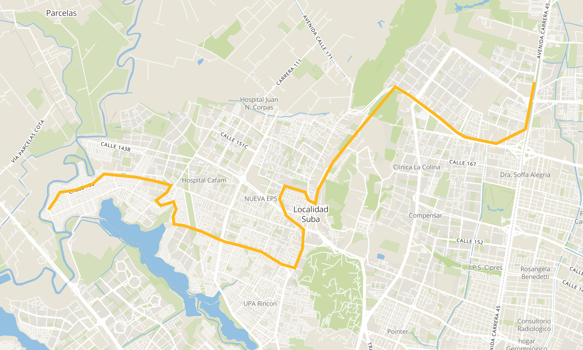 | Centro Comercial Santafé (Auto Norte - Cl 187) (B) | Br. Santa Cecilia II (Kr 160 - Cl 134) |