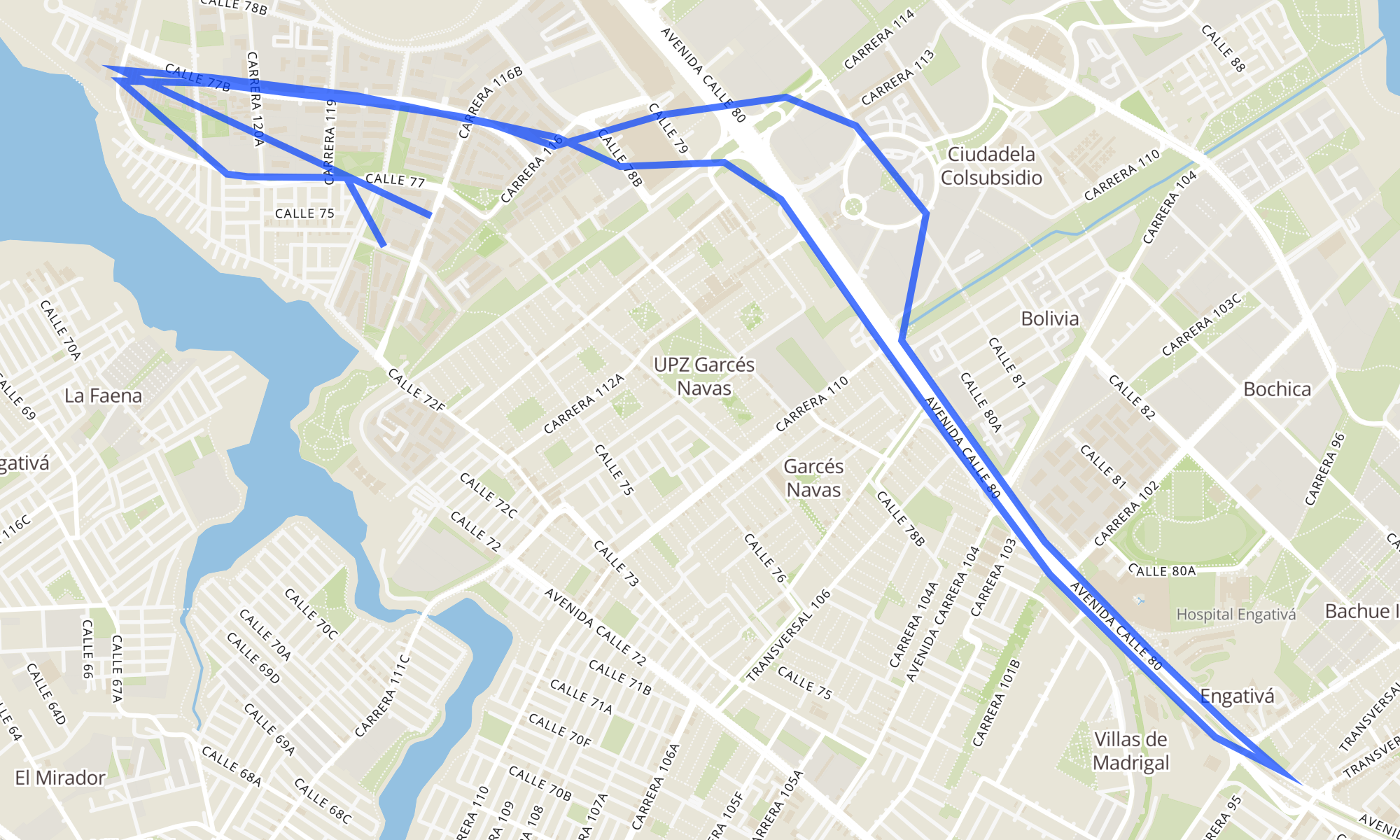 | Br. Altos De Los Cerezos (Cl 74a - Kr 116b) | Br. Gran Granada (Kr 116b - Cl 74a) |