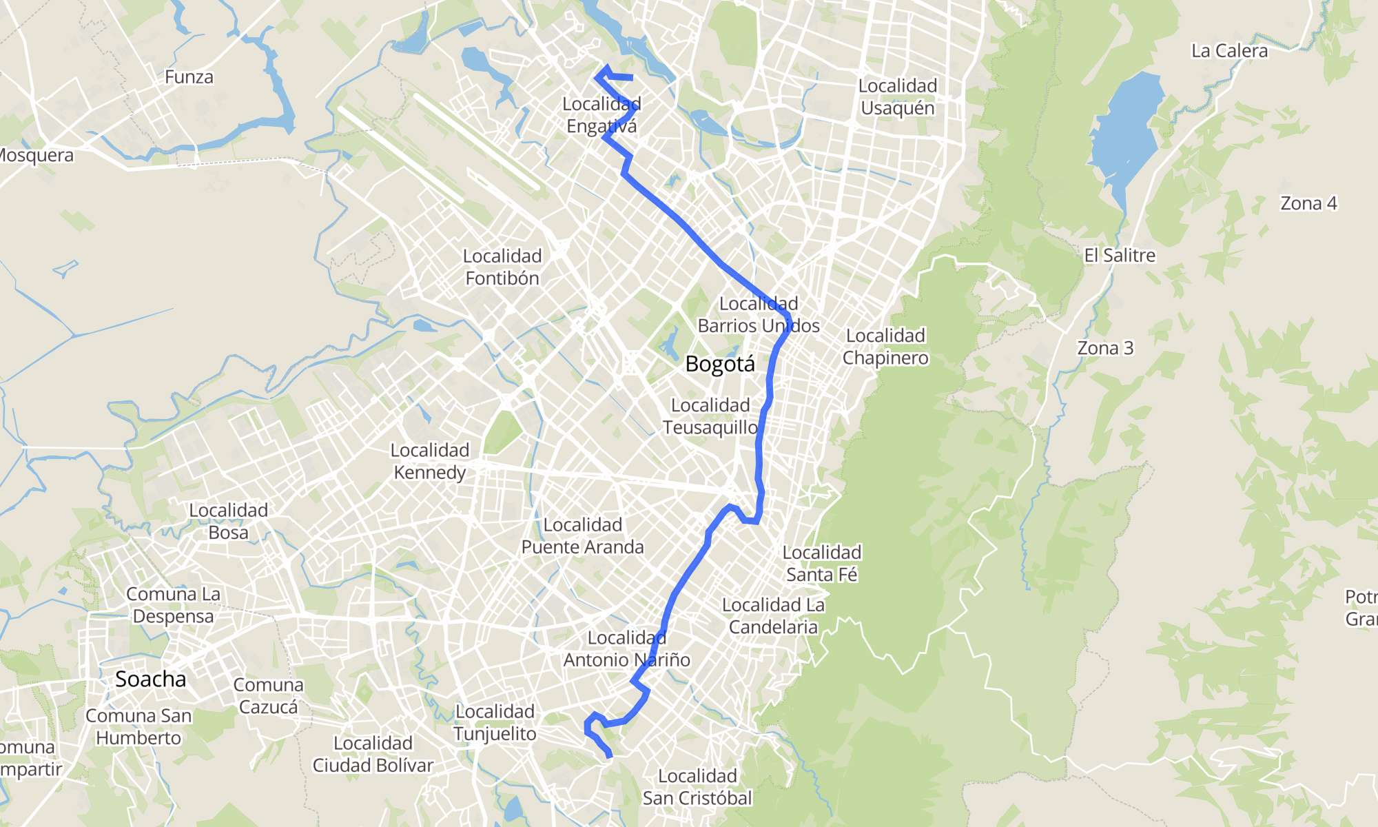 | Br. Las Lomas (Tv 11a - Dg 38g Sur) | Br. Ciudad Bachué I Etapa (Kr 95g - Cl 89) (B) |
