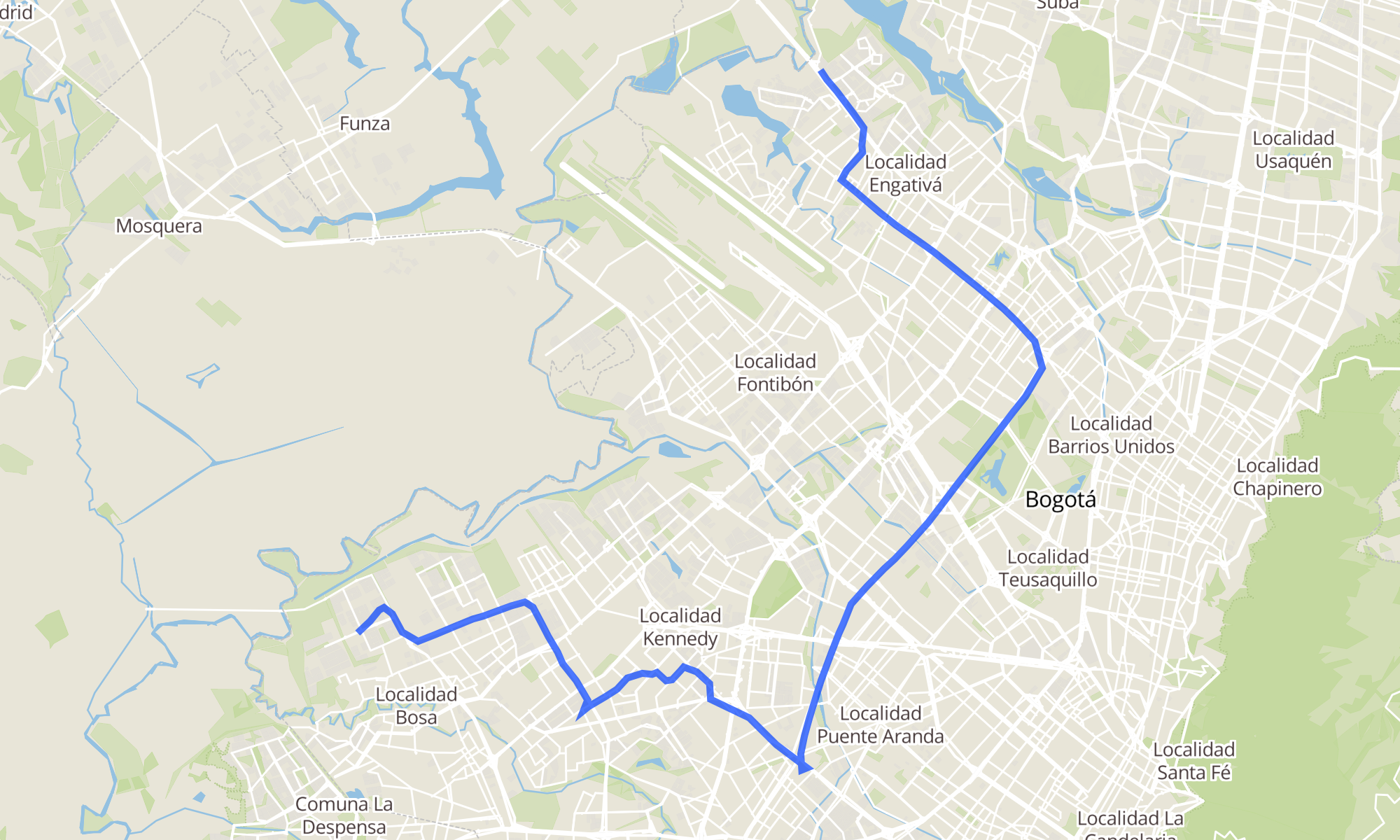| Br. San Bernardino XIX (Kr 95a - Cl 75a Sur) (C) | Puente De Guadua (Cl 80 - Kr 119) |