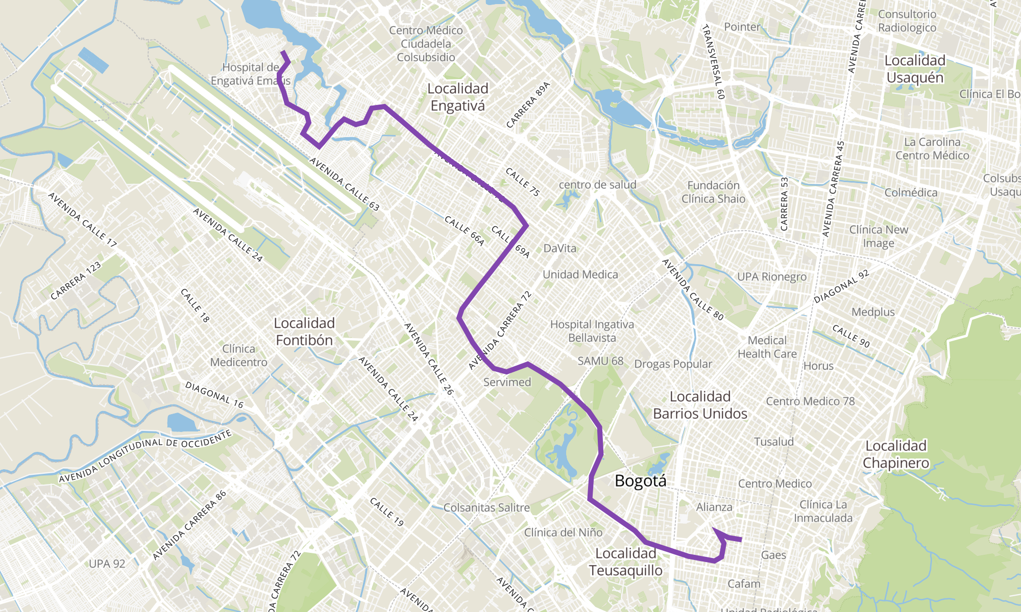 | Parque El Divino Salvador (Ac 57 - Kr 17) | Br. La Faena (Cl 70a Bis A - Kr 117a) |