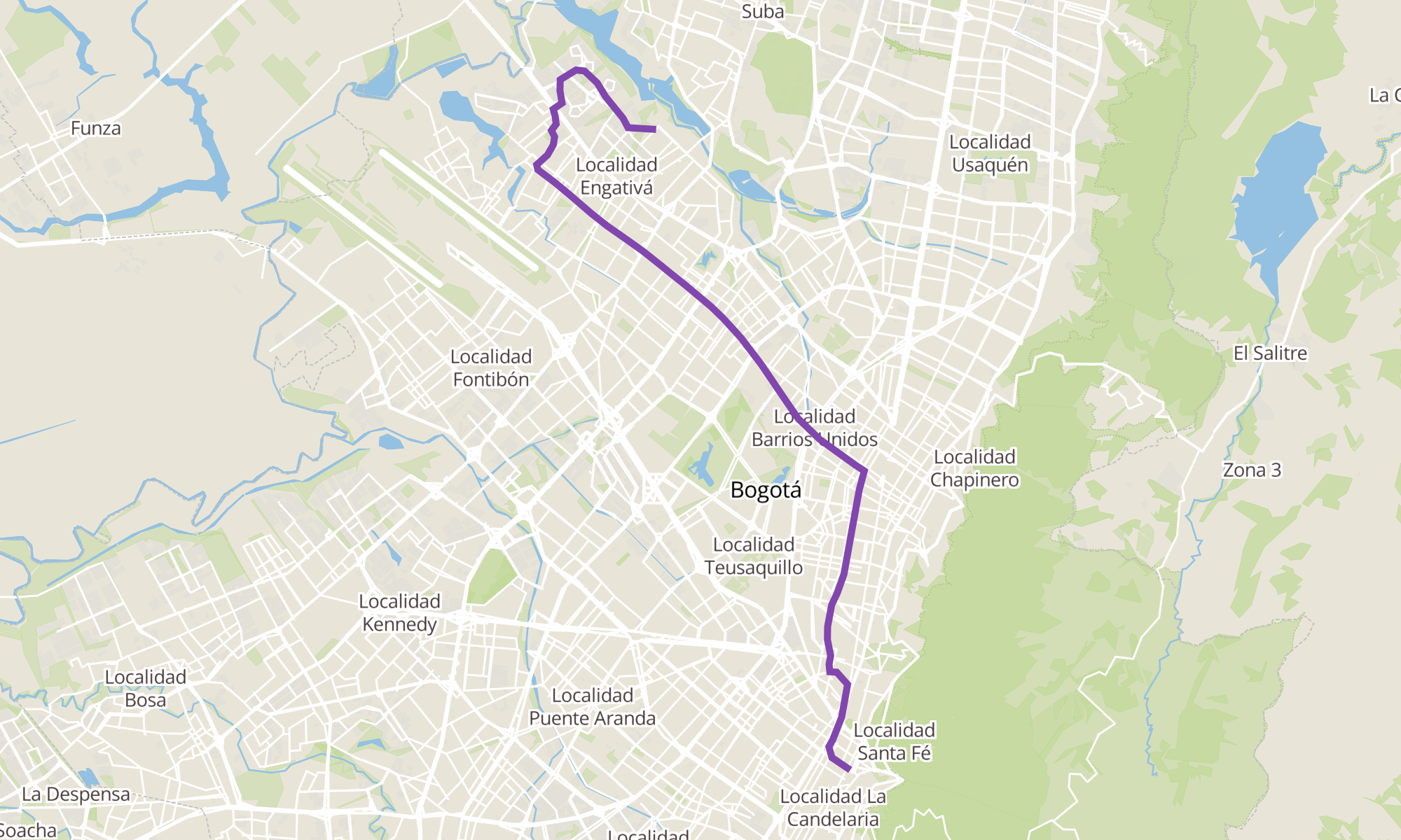 | Br. Las Nieves (Ac 19 - Kr 4) (D) | Br. Ciudad Bachué I Etapa (Kr 95g - Cl 89) (B) |