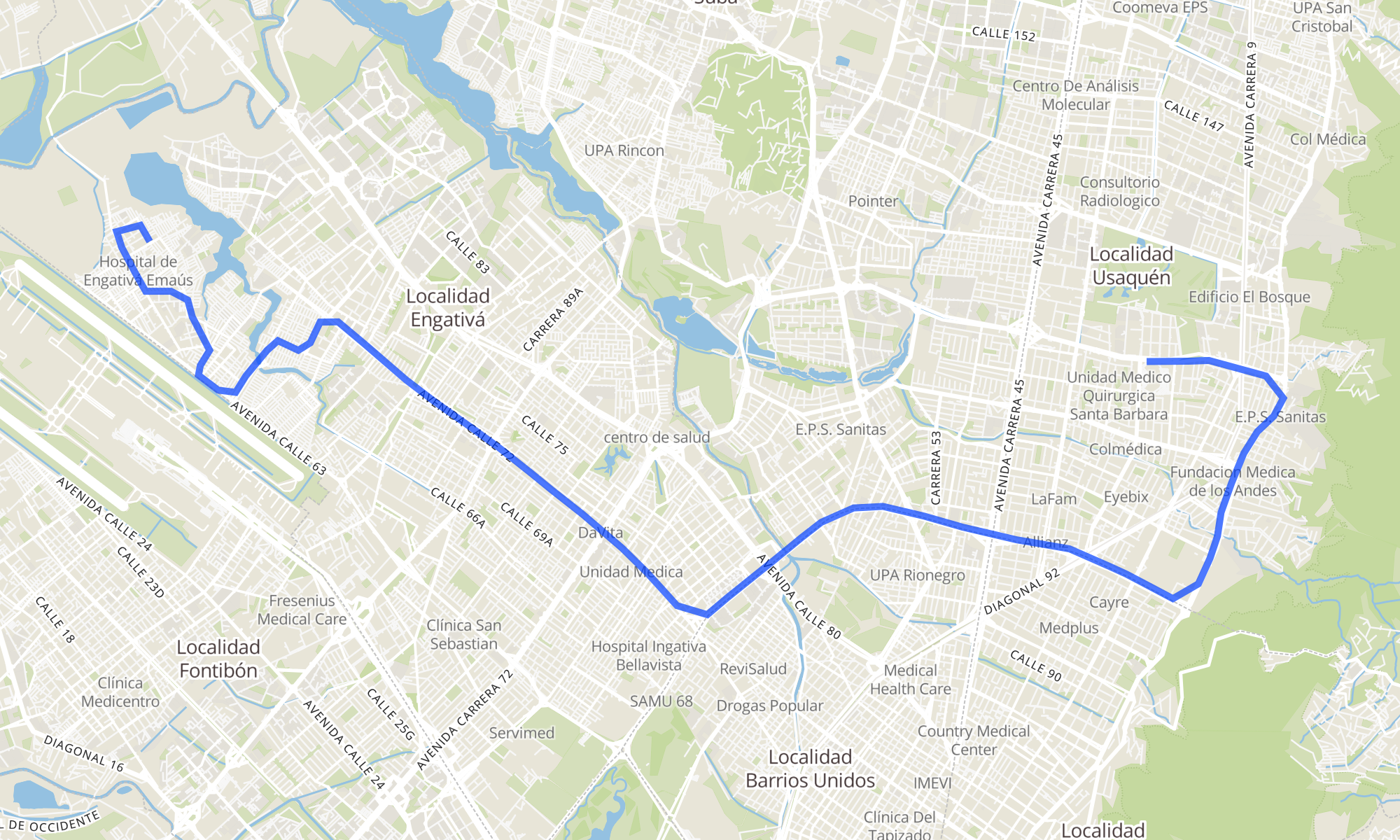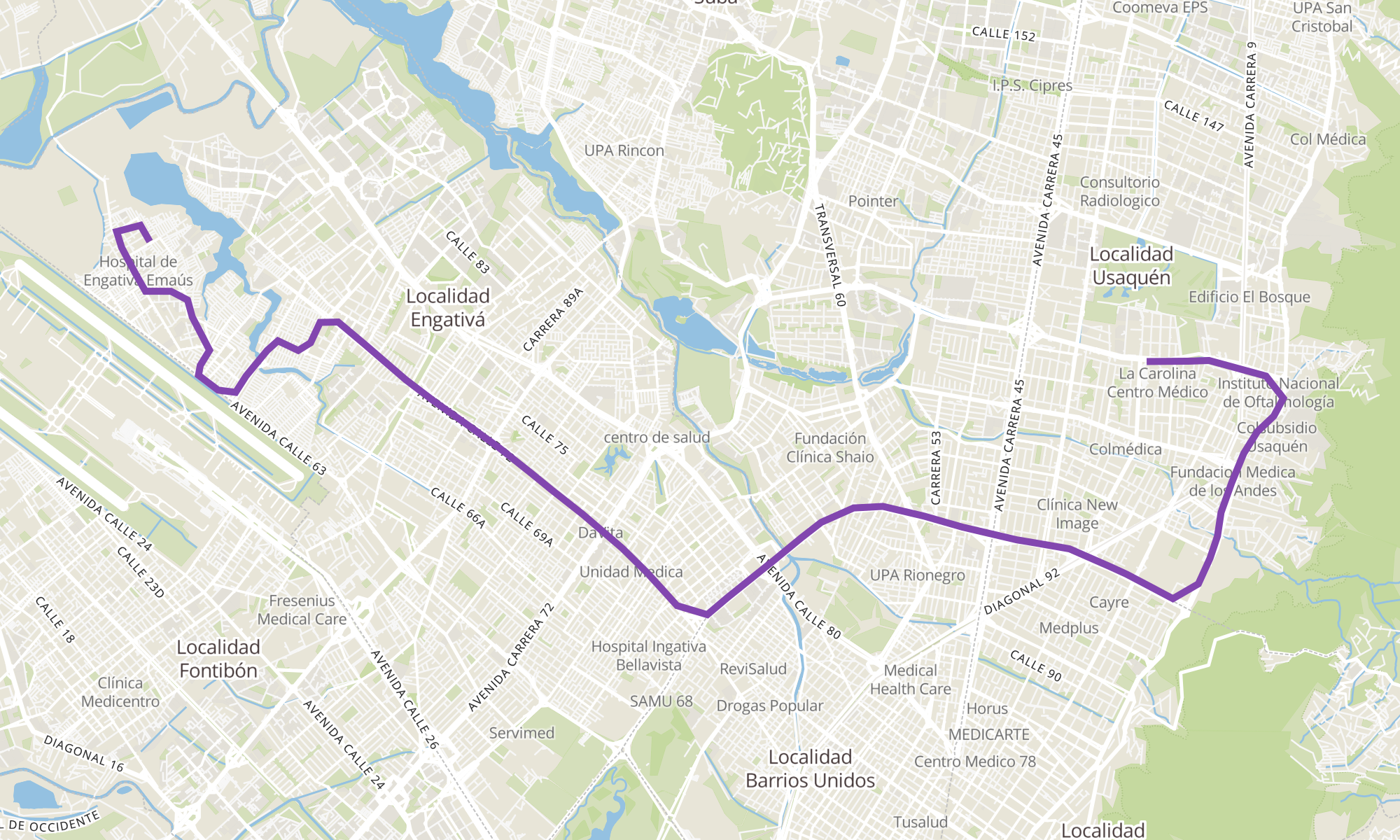 | Centro Comercial Unicentro (Ac 127 - Kr 14a) | Jac Engativá Centro (Cl 66b - Kr 121) |