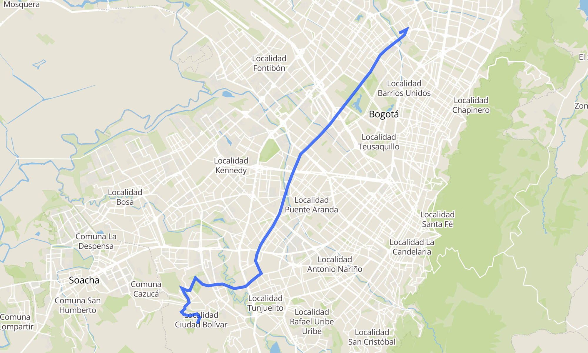 | Br. Arborizadora Alta (Cl 72f Sur - Kr 35) | Ied Julio Florez (Cl 95 - Kr 68b) |