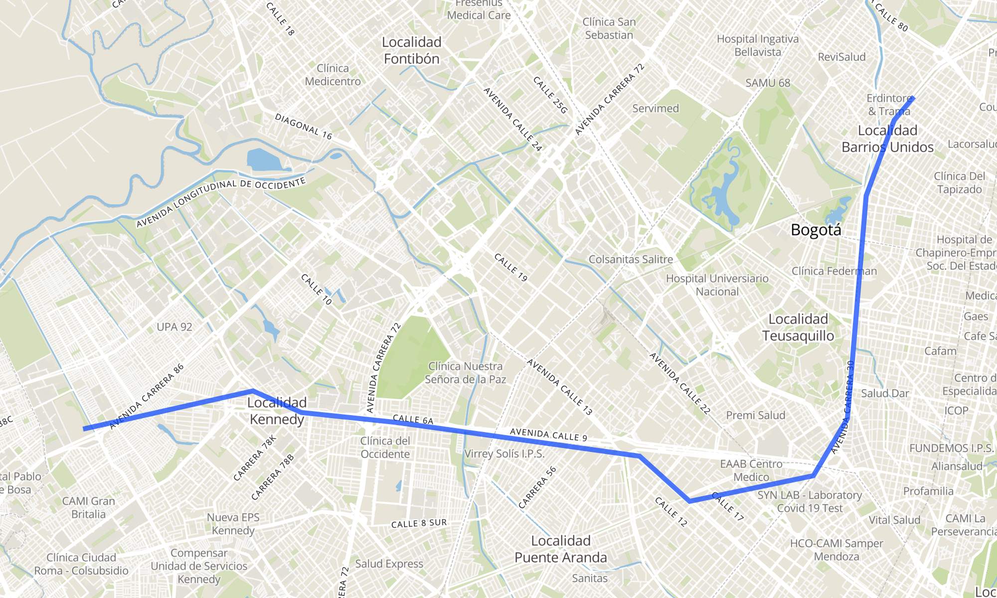 Recorrido de la línea E32: NQS Calle 75 - Zona M